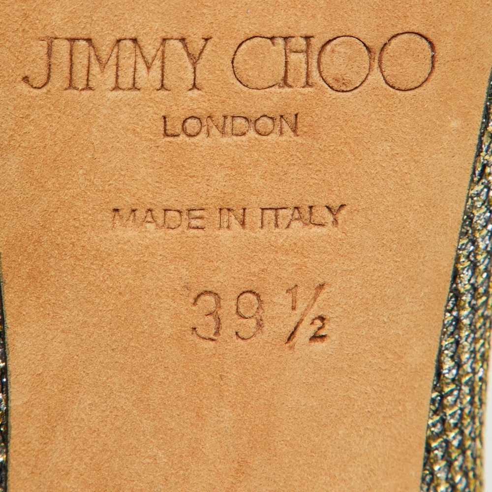 Make a chic style statement with these designer pumps. They showcase sturdy heels and durable soles, perfect for your fashionable outingsCertified by The Luxury Closet - This item has gone through a detailed authentication process overseen by our experts. We offer a lifetime guarantee of authenticity on all our items. Import duties, taxes and charges are not included in the item price. These charges are the buyers responsibility. Please check with your country’s customs office to determine what these additional cost will be prior to buying. Our eBay Store About Us Contact Us Add to Favorite Sellers Jimmy Choo Metallic Gold Lurex Fabric Peep Toe Platform Pumps Size 39.5 $188.1 Make a chic style statement with these designer pumps. They showcase sturdy heels and durable soles, perfect for your fashionable outings Product Details Brand Color Gold Dimensions Material Metallic Lurex Fabric Size 39.5 Outsole Width 6.5 cm Outsole Length 24.5 cm Heel Height 11.5 cm Includes The Luxury Closet Packaging Certified by The Luxury Closet This item has gone through a detailed authentication process overseen by our experts. We offer a lifetime guarantee of authenticity on all our items. How We Check The in-house team of experts at The Luxury Closet is highly trained to verify the authenticity and the condition of the luxury products. They ensure that only 100% authentic items are put on sale.The evaluation process is unique with its own mix of assessment criteria and differs according to the category. Each item is evaluated based on the following combination of hallmarks, hardware, stitching, symmetry, material, craftsmanship, stamping, codes, hologram stickers, and packaging. Our authenticators also check if the items have been modified or amended (e.g., aftermarket diamonds, replaced batteries, repaired bags, etc.) International Buyers Import duties, taxes and charges are not included in the item price. These charges are the buyers responsibility. Please check with your country’s customs office to determine what these additional cost will be prior to buying.