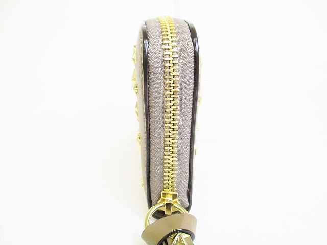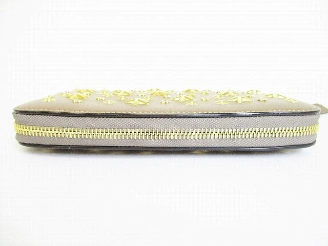 Jimmy Choo gold rhinestone studded leather long wallet with round zipper in light mo