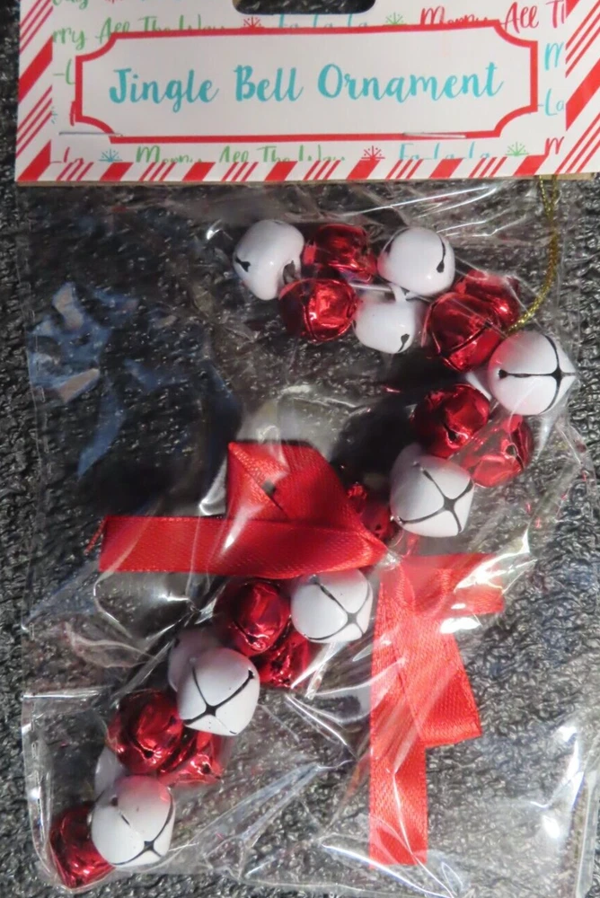 JINGLE BELL ORNAMENT Red & White Bells Candy Cane design THANKS FOR LOOKING!!!!!