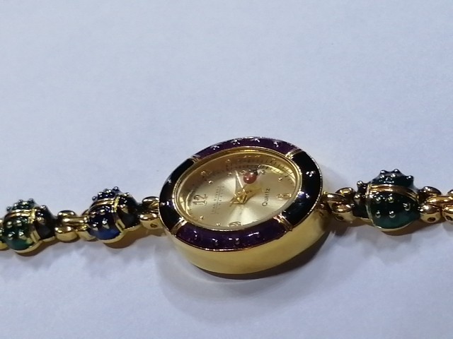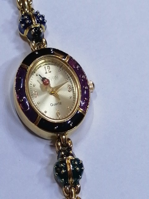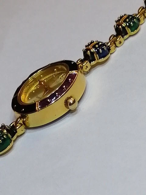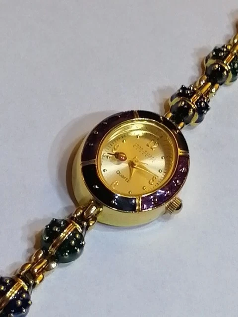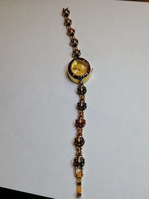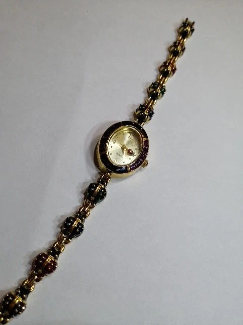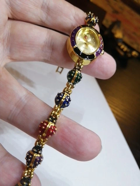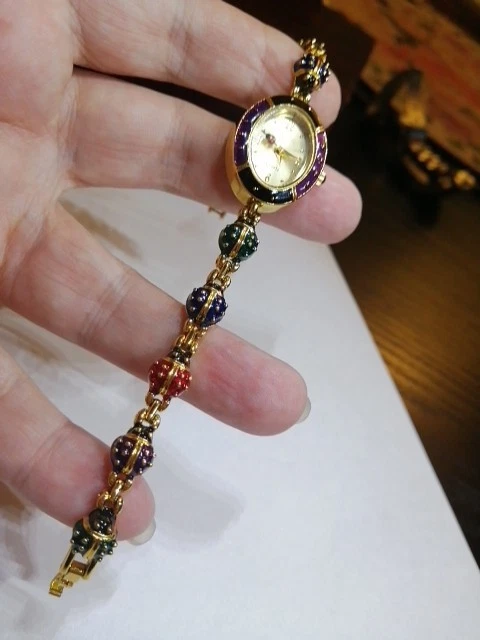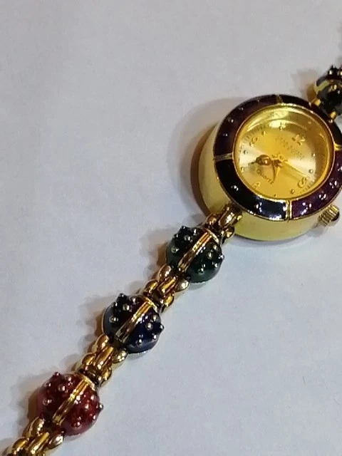 Unveil a touch of vintage charm with the Joan Rivers Colourful Ladybug link Watch, a rare find for enthusiasts and collectors alike. Melding functionality with a bold aesthetic, this wristwatch boasts an array of vibrant colours that capture the essence of its era. Crafted for those who appreciate the fusion of fashion and timekeeping, this watch is a noteworthy piece from the renowned Joan Rivers brand. It stands out as a striking accessory within any jewellery collection, especially for those who favour unique, retro-style timepieces. 7.5" long, case is 2.3 cm long, 2 cm wide. Bracelet 8 mm wide, 10 different colour ladybug links . Hand Enameled, has battery, little ladybugs link bracelet, mint condition, minor wear from moving and storage, probably never worn, this is unique the last watch with good price , similar one with extra bracelet cost on ebay $745. So get the last Ladybug watch here for your collection.