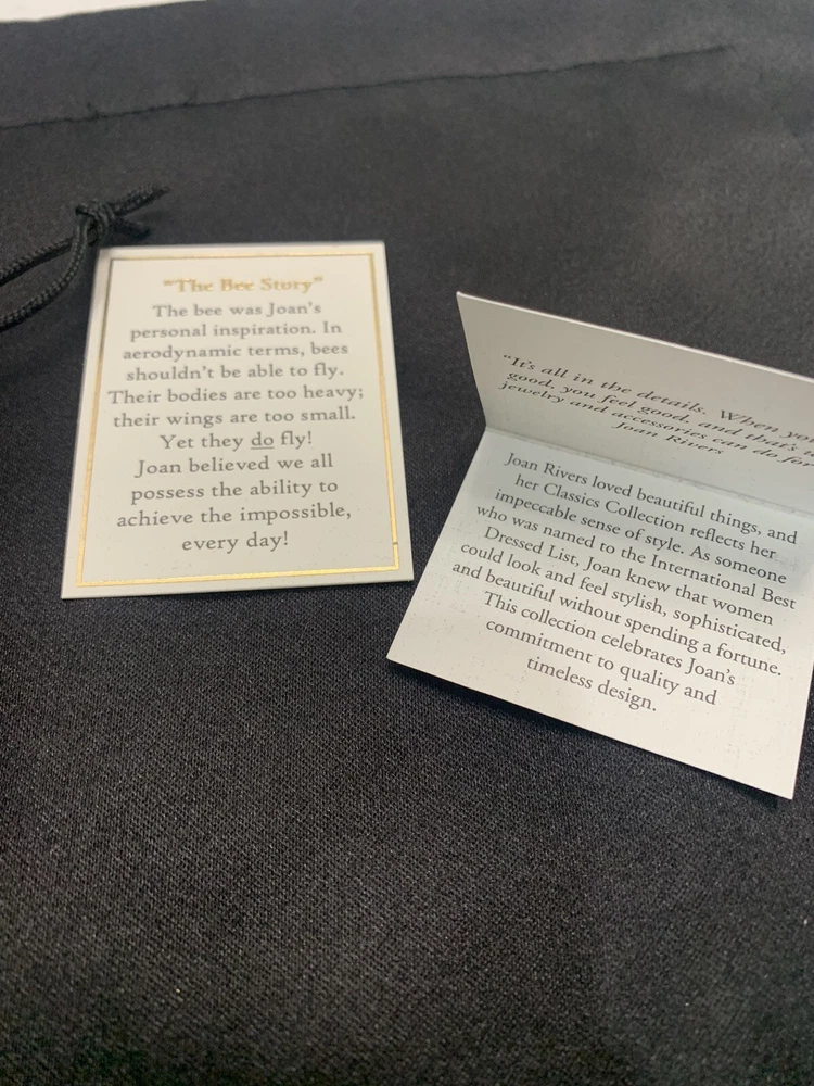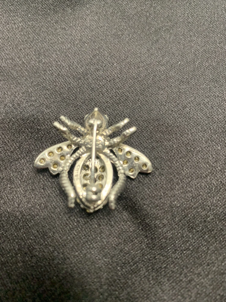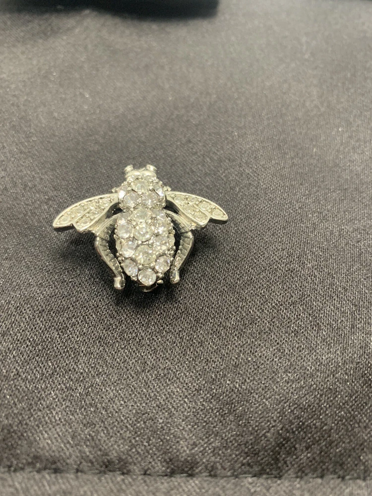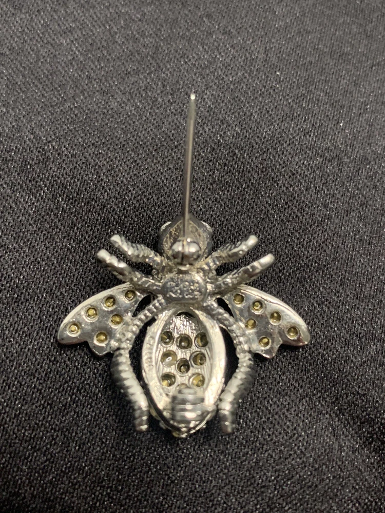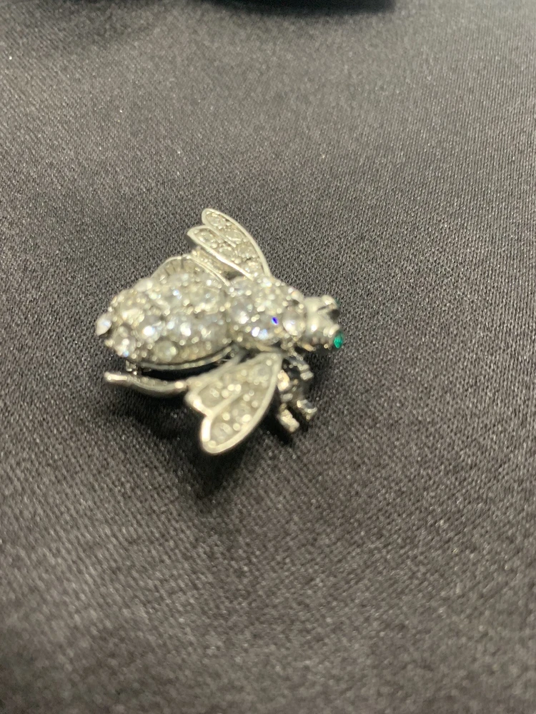 Add a touch of nature-inspired glamour to any outfit with this stunning Joan Rivers Rhinestone Bumble Bee Brooch/Pin. The pin features sparkling rhinestones and green eyes that perfectly complement the silver-colored metal and enamel material. The round-shaped moonstone main stone and multiple opals and crystals add a touch of elegance to the piece. The pin is signed by Joan Rivers and is perfect for any occasion, including Mother's Day, Graduation, Anniversary, Birthday, Christening, and Confirmation/Communion. Get this unique brooch/pin as a gift for your loved ones or add it to your collection today!