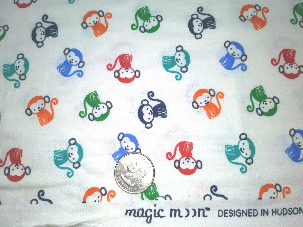 Adorable baby monkeys in bright colors scattered over white background Magic Moon designed for JoAnn fabrics Fresh off the bolt One piece measuring one yard and 10" (46" by 43" wide) ** I also have this fabric listed by the half yard if you want a longer piece ** 100% cotton New, never washed No one here smokes but a couple of the cats are pretty heavy drinkers! Payment is due within 3 days. If you need more time or are bidding on multiple items please message me. I package well and ship quickly. I happily combine shipping on multiple purchases within the same week. If you need to return an item, please use Ebay Returns. If you have a problem with an item, please get in touch with me before going through Ebay or leaving feedback. I'm sure we can find a solution. Please remember I'm human and sometimes make a mistake. International bidders please email BEFORE bidding for shipping costs outside of USA.