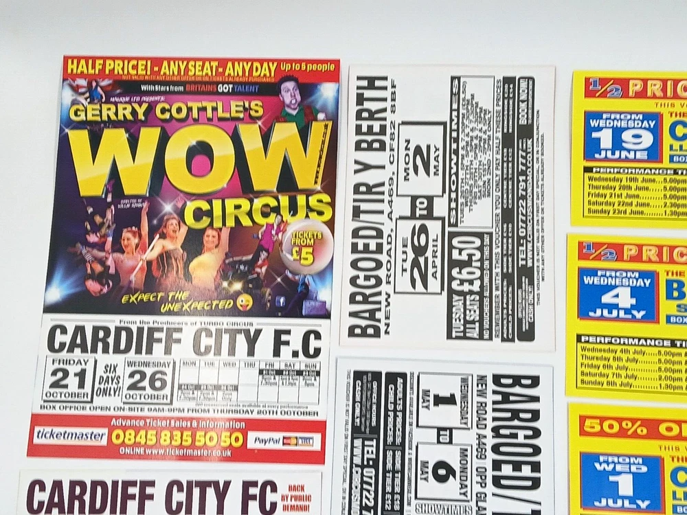Job Lot Circus Flyers/Vouchers Includes: Circus Mondao, Uncle Sam's Great American Circus, Gery Cottle's WOW circus, Moscow State Circus, Circus Vegas, Circus Extreme Any questions, please ask Thanks for looking!
