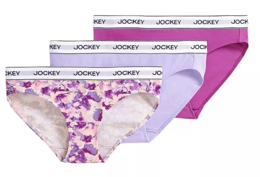 Jockey Women’s 3-Pair Bikini Underwear Panties Cotton Blend Soft Stretch Size XL New With Tags Size: X-LARGE 95% Cotton 5% Spandex Style: 2587 Machine Washable Imported