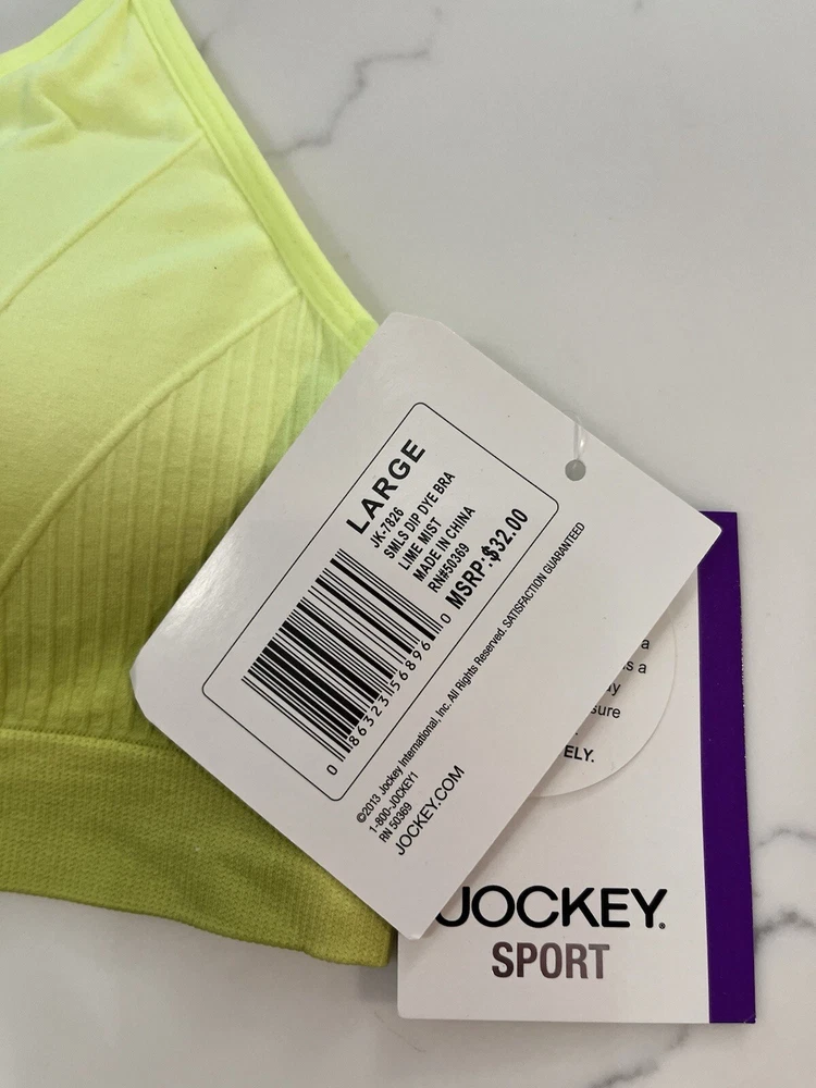 Jockey Womens Seamless Sports Bra Lined Size: L. Lime Mist Racerback