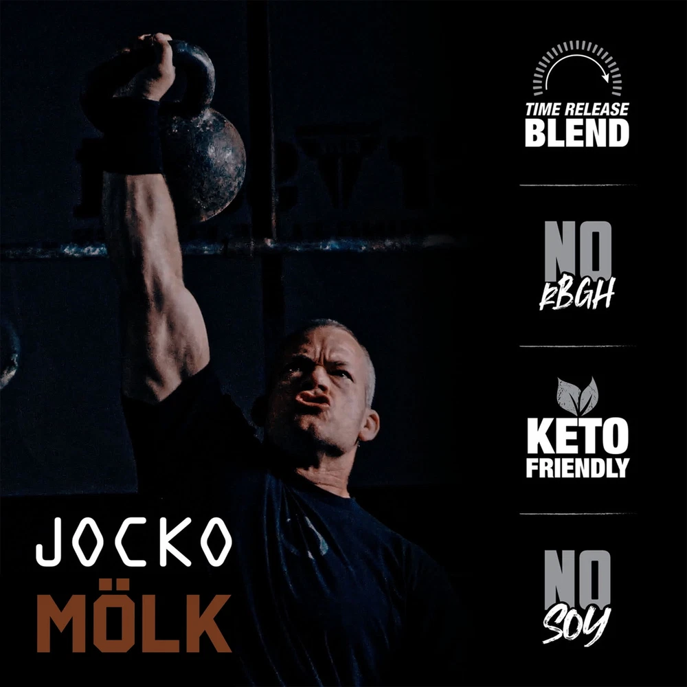 Fuel your fitness journey with Jocko Mölk Whey Protein Powder, meticulously crafted to support muscle recovery and growth. Developed by Navy SEAL and fitness expert Jocko Willink, this premium protein powder is designed to help you achieve your athletic and fitness goals with maximum efficiency and delicious taste. Combining the finest ingredients with cutting-edge formulation, Jocko Mölk provides a comprehensive protein solution that ensures you get the most out of your workouts. Each serving delivers a powerful blend of proteins, promoting sustained amino acid release to aid in muscle repair and development. Whether you're looking to enhance your athletic performance, build muscle mass, or simply incorporate a high-quality protein source into your diet, Jocko Mölk Whey Protein Powder is your perfect partner on the path to peak fitness. The delicious sugar free chocolate flavor transforms your post-workout routine into a delightful experience, making it easier than ever to stay on track with your nutritional goals. Elevate your protein intake with Jocko Mölk and experience unparalleled support for muscle recovery and growth. JOCKO MÖLK: Designed and engineered with a time-release blend of whey concentrate, whey isolate, micellar casein, and egg. This whey isolate protein powder slowly digests in your system and fuels muscle growth and muscle recovery all day long. DIGESTIVE ENZYMES & PROBIOTICS: With added digestive enzymes and probiotics to fuel growth and muscle recovery all day long, Mölk’s complex mix of digestive enzymes and probiotics keeps your gut in check and ensures everything moves smoothly. GRASS-FED PROTEIN, NO HORMONES OR SOY: We’ve developed the best protein powder from four different types of protein: whey concentrate, isolate, casein, and egg. Our whey protein powder comes from happy, grass-fed cows and is soy- and hormone-free. SUGAR FREE CHOCOLATE FLAVOR: Get your protein shake without the unwanted sugar. Mölk is sweetened with monk fruit only. It has no added sugar, no artificial sweeteners, and no added flavors. AMINO ACIDS: Blended with a plethora of amino acids, the building blocks of protein, these necessary components help your body with building muscle and regulating immune function. Check out the amino acid profile on the bottle! The Jocko Fuel Standards: - No fillers - No vanity ingredients - No banned substances - Responsibly Sourced - Transparent Label - Natural Sweeteners / No Artificial Sweeteners - Third-Party Tested Supplements Muscle Health, Strength & Recovery
