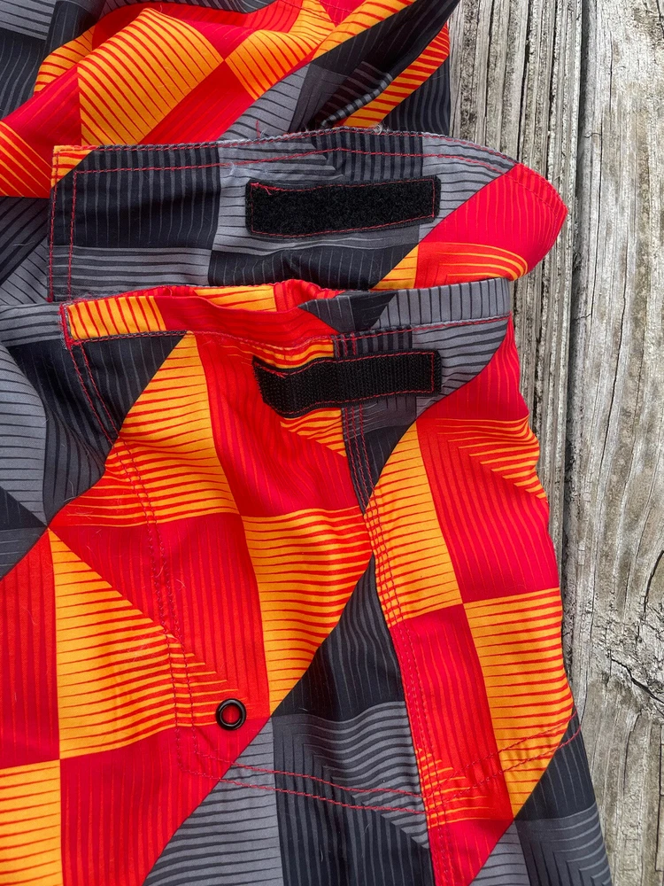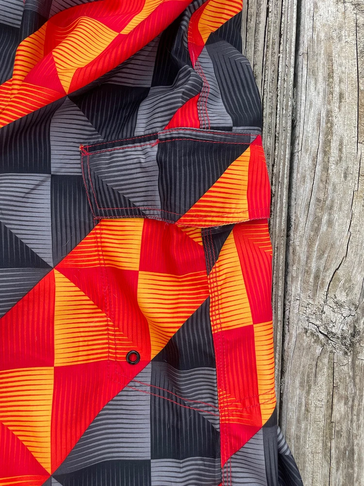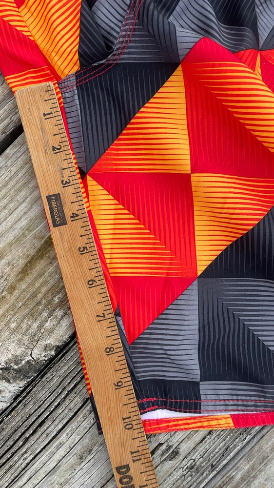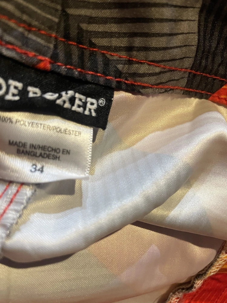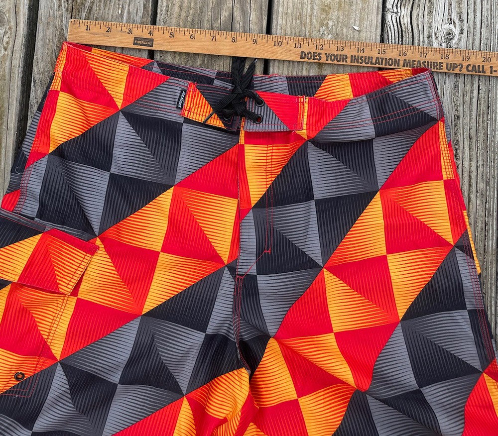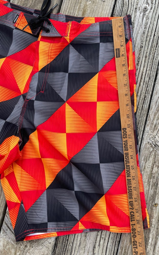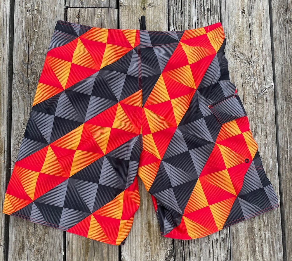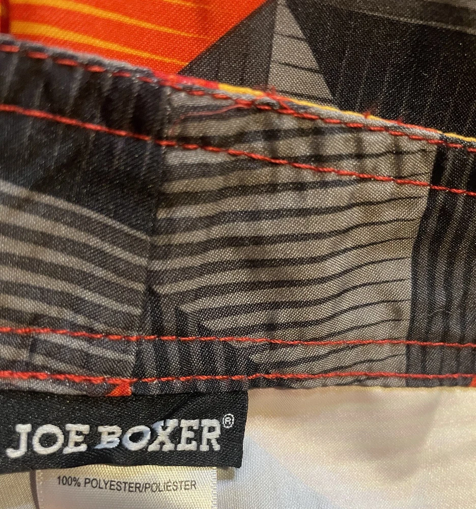 Joe Boxer Men’s Swim Trunks Size 34 Red Black Yellow Front Closure Leg Pocket. Pre-owned in very good condition