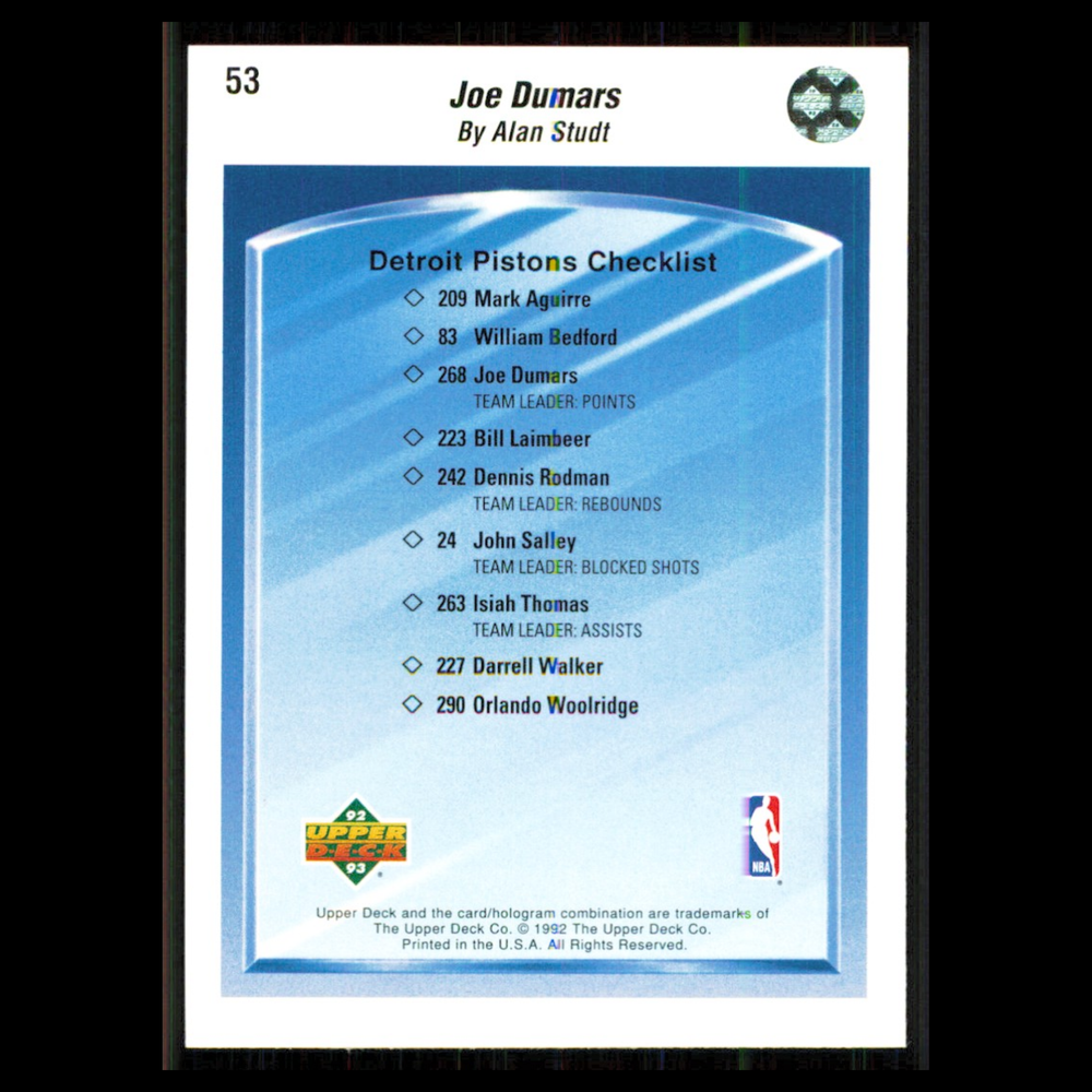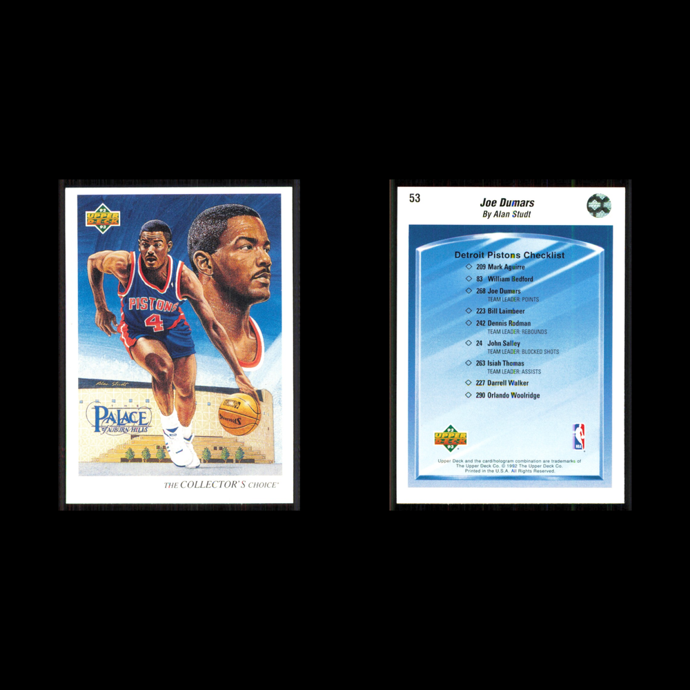 You will receive the exact card in the scans. The scans are not stock photos—they are actual scans of the cards you will receive. Please send a message if you have any questions or read the full description. Joe Dumars #53 1992 Upper Deck Detroit Pistons Basketball Card NBA NM You will receive the exact card in the scans. The scans are not stock photos—they are actual scans of the cards you will receive. Please send a message if you have any questions. This card is in near-mint condition or better. Equivalent to a card fresh from the pack. Learn more about eBay's card condition guidelines here: https://pages.ebay.com/cardconditions/ Please view the scans and send a message if you have any questions about condition. Shipping Details Please note that free standard shipping is sent via eBay standard labels in a plain brown or white envelope. All free standard shipments use penny sleeves and cardboard card shields or top loaders to protect the cards. There is no tracking using these labels it will say shipped and delivered only. You can view the information by clicking the link in your order. Please be advised that it can take at least two weeks in some cases for the PWE to arrive please do not contact us before then as we will not have any information to give you. If you need it sooner we can provide shipping via any shipping provider for an additional cost. WE BUY COLLECTIONS We are always on the lookout so feel free to contact us.