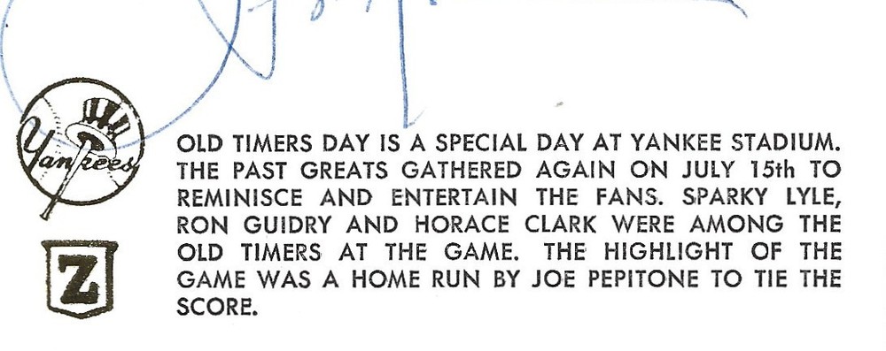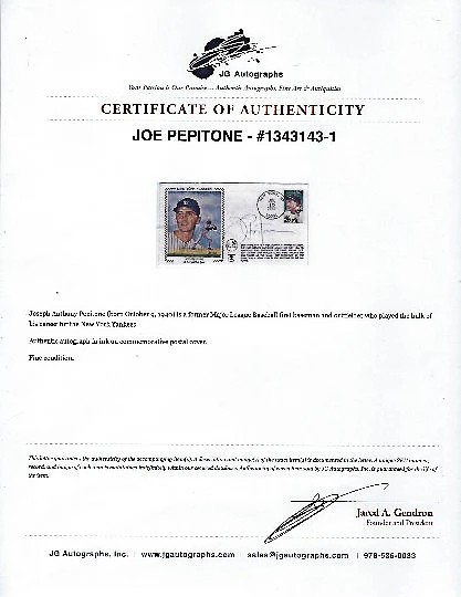Save on shipping. Each additional item purchase only .50 Cents shipping Commemorative Cover of Old Timers Day at Yankee Stadium July 15, 1989. Joseph Anthony Pepitone is a former Major League Baseball first baseman and outfielder who played the bulk of his career for the New York Yankees. He also played several seasons with the Chicago Cubs and had short stints with the Houston Astros and Atlanta Braves.