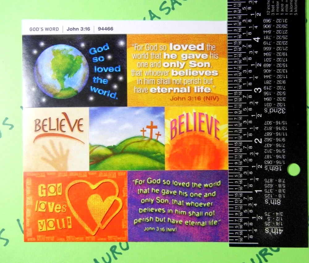 Sticker Sheet Is New. Sticker Brand Is Tyndale. Sticker Theme Is God's Word John 3:16 Christian Sticker. When Purchasing Multiple Sticker Sheets Or Packs Please Add All Items To Cart Before Purchase So That Your Purchase Combines Down To Base Shipping Price. Stickers Are Shipped WITHOUT Tracking In An Envelope With Cardstock.