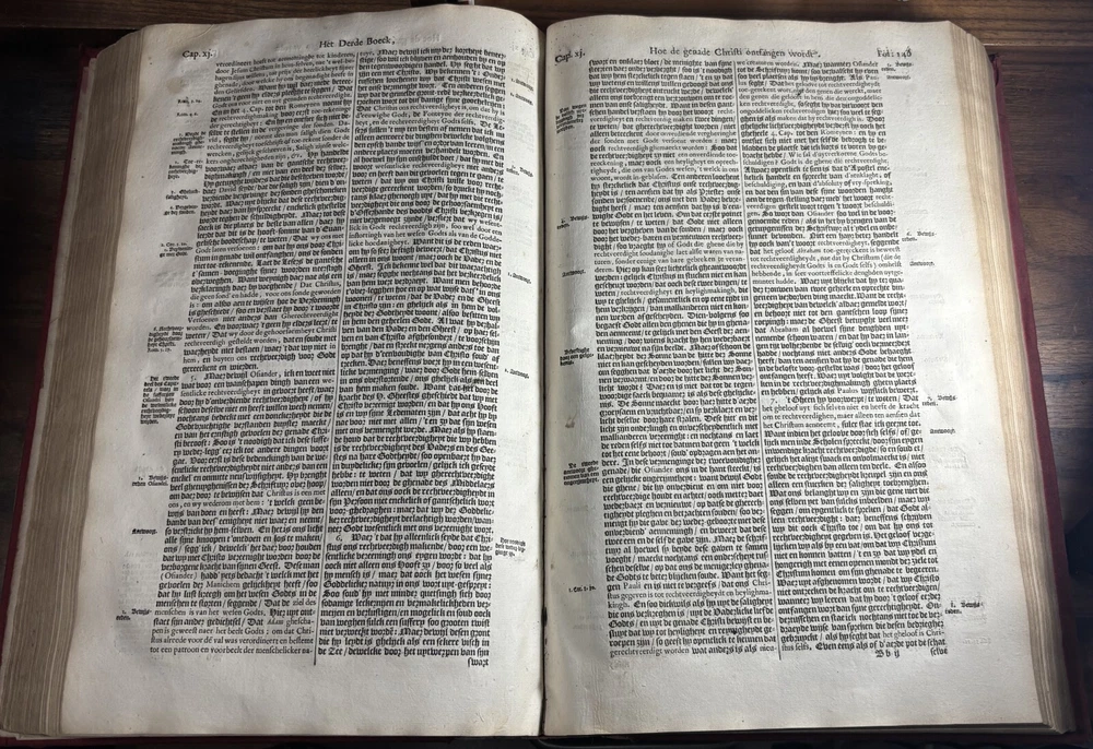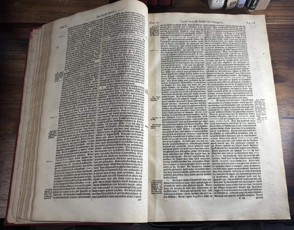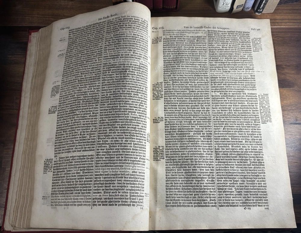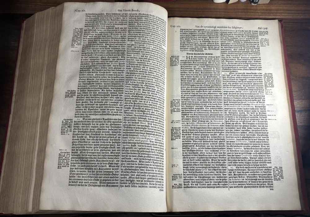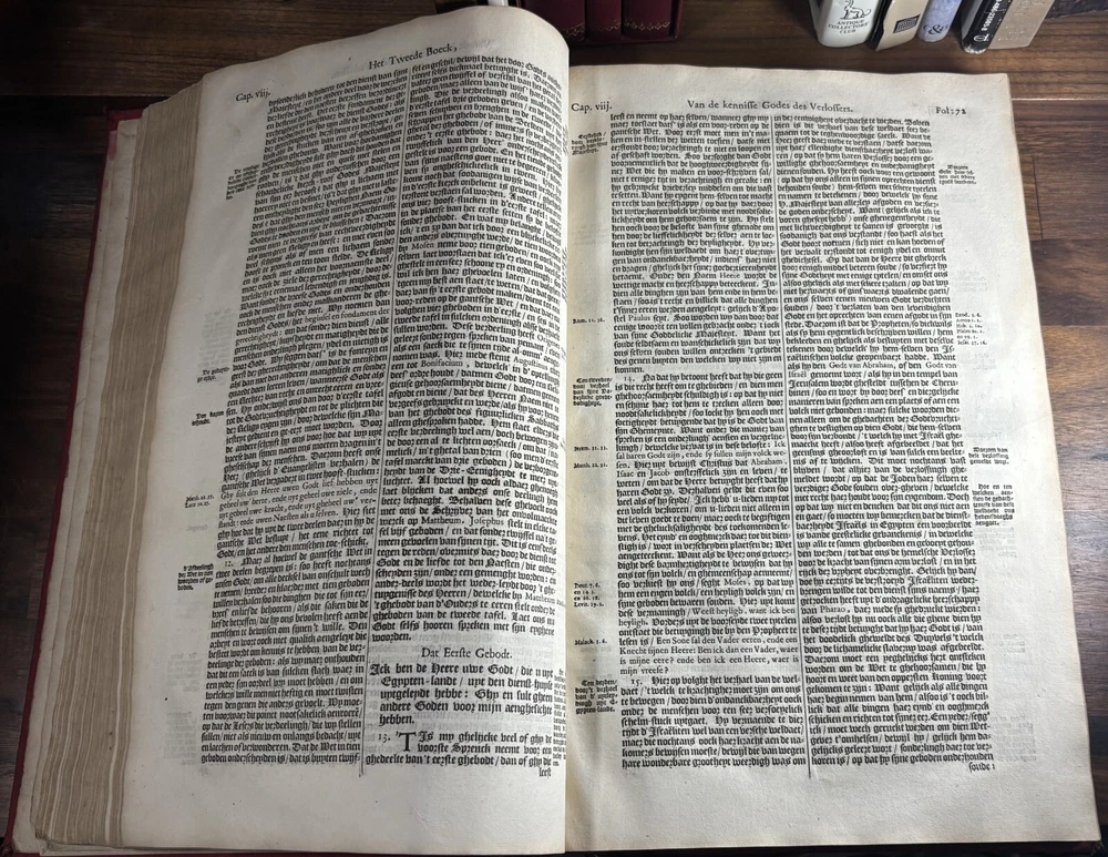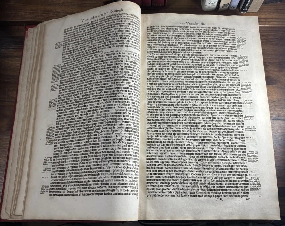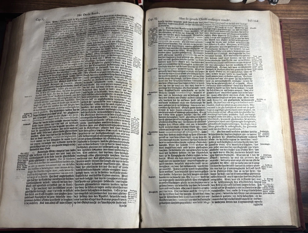 John Calvin's Institutes or Instruction in the Christian Religion, Dated 1650 Overview: Title: Institutie ofte Onderwijsingh in de Christelicke Religie. In vier boecken beschreven door Johannes Calvijn. Nu van nieuws uyt het Latijn en François getrouwelick over-geset door Wilhelmus Corsmannus. Origins and history – John Calvin’s Masterwork: John Calvin (1509–1564), a French theologian and reformer based in Geneva, first published his Institutes in 1536 , originally in Latin. Over the next two decades, Calvin greatly expanded the work—eventually producing a four-book version in 1559 that became the definitive edition. The Institutes provided a clear and systematic defense of Protestant theology. It responded to critics of the Reformation and aimed to educate both laypeople and clergy in Reformed doctrine. Calvin explained topics like the nature of God, the Trinity, the sacraments, justification by faith, Christian liberty, and predestination. Dutch Context – Why This Translation Matters: The Netherlands was a center of Calvinist thought during the Reformation and early modern period. This 1650 edition reflects the continued influence of Calvinism in Dutch society, particularly after the Synod of Dort (1618–1619) , which had established Calvinist orthodoxy in the Dutch Reformed Church. Wilhelmus Corsmannus , the translator, was a Reformed minister in Baardwijk and Gorinchem. He translated the Latin version to make Calvin’s ideas accessible to Dutch-speaking readers. The printer, Paulus Aertsz van Ravesteyn , was an active Amsterdam publisher of theological and scholarly works in the 17th century. The Book’s Role: This translation played a major role in educating Dutch pastors, elders, and students in Reformed theology. It reinforced Calvinism as the official theological standard in the Dutch Republic and helped unify Reformed churches. The book also served as a catechetical and polemical tool —used to contrast Protestant teachings against Catholic doctrine. Dimensions: Weight - 2.16KG Height - 37cm Width - 23.5cm Thickness - 6.5cm Damage: Wearing along the spine Title page is partially off (Please see photos above) Occasional stain Very rare foxing can be found.