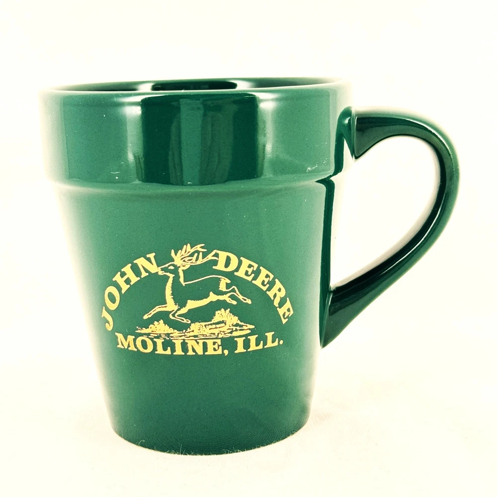 Offering one John Deere Mug shaped like a flowerpot with gold lettering "John Deere Moline ILL". Good condition with light surface scratches, no chips or cracks. It measures 4” high x 3 3/8” diameter. Please view the photos for details and condition. Measurements and photo colors are approximate. Terms of Sale: Photos are of the actual item you will receive and sold "as is". Placing an order is your agreement that you know what you are buying, have viewed the photos and find the condition acceptable. Use Ebay Messages to contact me with questions or concerns about your order. Shipping will be USPS Ground Advantage at the rate determined by Ebay. Please inspect your items upon arrival and contact me if there are any problems. No returns please.