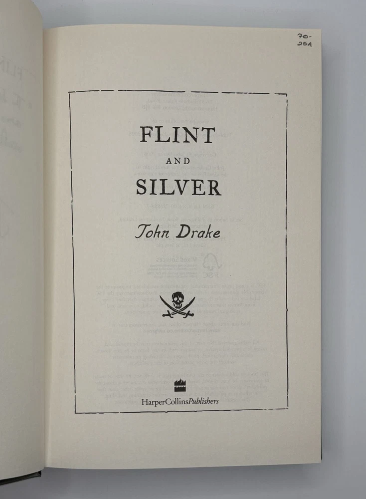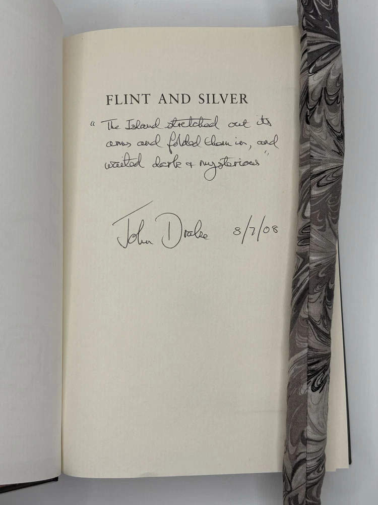 FLINT & SILVER [Signed] Author: Drake, John Title: FLINT & SILVER [Signed] Publication: London, UK: HarperCollins, 2008 Edition: First UK Edition, First Printing Description: Octavo, 376 pages. In Very Good condition with Very Good condition dust jacket. Spine is black and orange with white and silver lettering. Dust jacket protected by mylar covering, price uncut: "£10.00" on front flap, and small dent along rear head joint. Boards have mild shelving wear along spine head and rear head joint. Signed "The island stretched out its arms and folded them in, and waited dark and mysterious" and dated "8/7/08" by John Drake on title page. Shelved in hallway. Seller ID: 1392251 Subject: Literature Welcome to the eBay store of Second Story Books! DC's Oldest Rare and Used Bookstore, Second Story Books operates two open shops in the Washington D.C. metropolitan area. We have an extensive internet presence and provide accredited appraisals member ASA. This listing was created by Bibliopolis.
