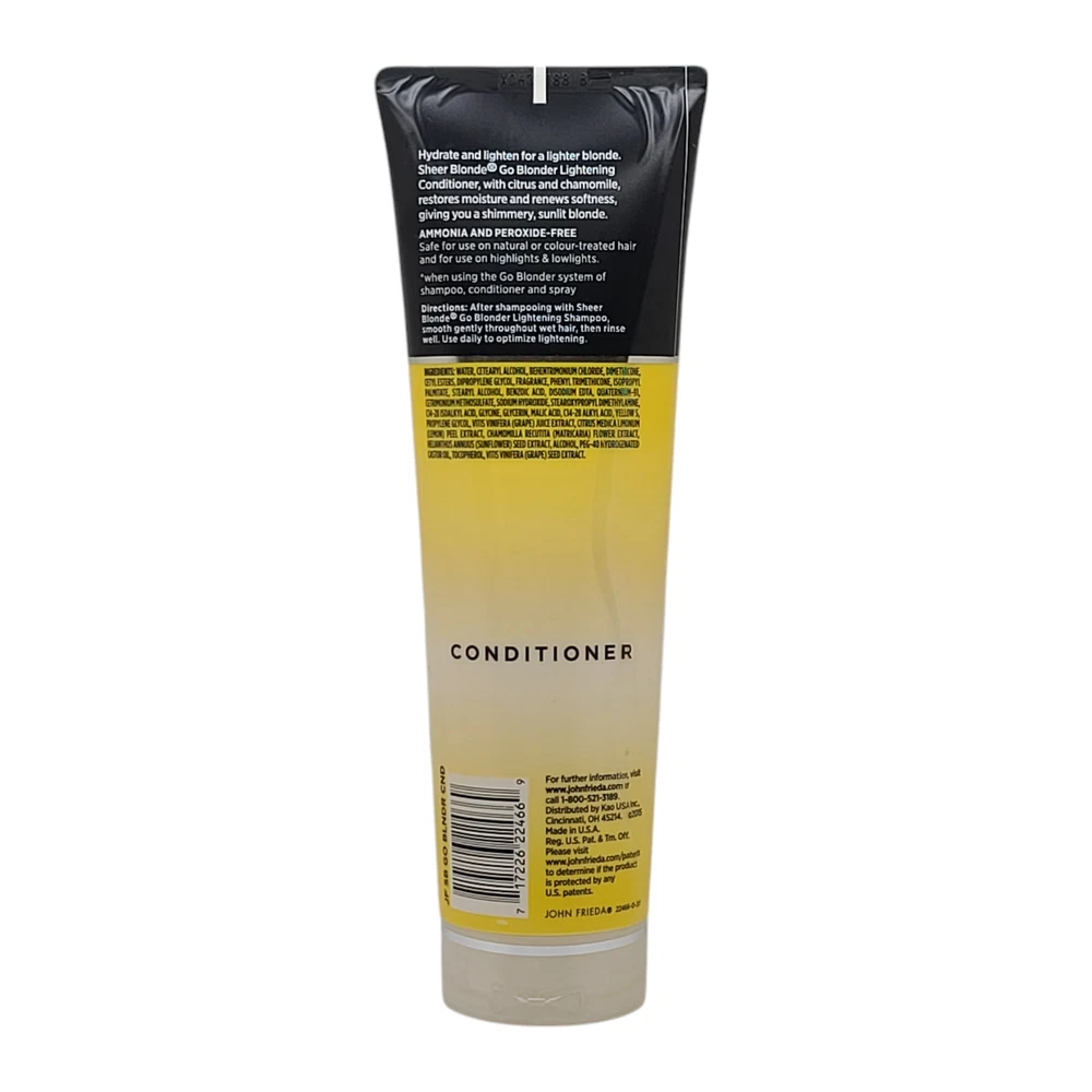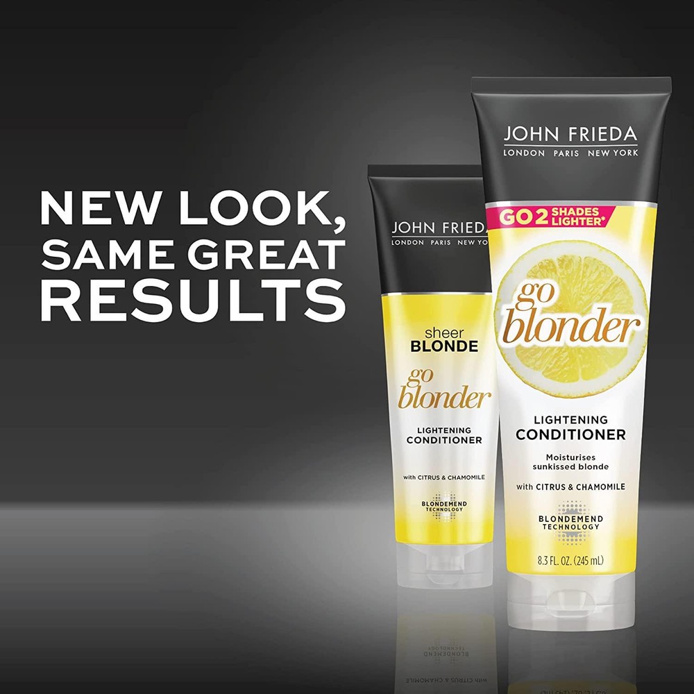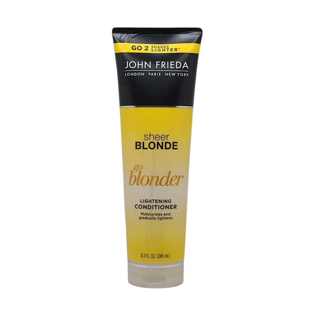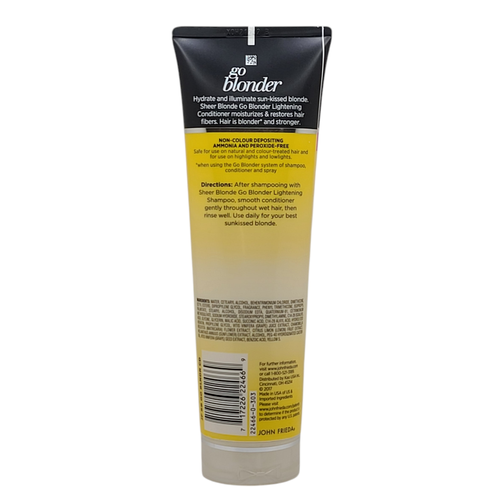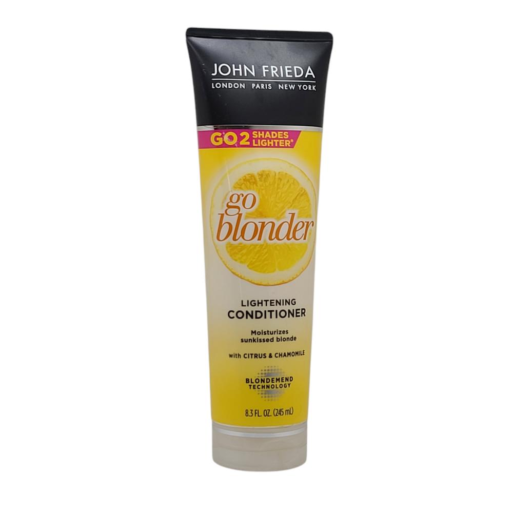 KleverKosmetics Our eBay Store About Us Contact Us Add to Favorite Sellers John Frieda Go Blonder Lightening Conditioner 8.3 oz *Packaging May Vary* ** Packaging May Vary ** John Frieda's Go Blonder Lightening Conditioner is designed to gradually lighten and brighten natural, color-treated, or highlighted blonde hair. Infused with citrus and chamomile, this conditioner not only enhances your hair's natural highlights but also restores moisture for a sun-kissed glow. It's gentle enough for daily use and free from ammonia and peroxide, ensuring your hair remains healthy and vibrant. Gradual Lightening: Gently lightens blonde hair over time, providing a natural, sun-kissed look. Safe for Daily Use: Free from ammonia and peroxide, making it suitable for everyday application without damaging hair. Color-Treated Hair Friendly: Ideal for natural, color-treated, or highlighted blonde hair, helping to maintain and boost color vibrancy. Moisture Restoration: Replenishes and maintains hair's moisture balance, leaving it soft and manageable. Natural Ingredients: Formulated with a blend of citrus and chamomile to enhance brightness and shine. Return and Refund Information • Please be aware that colors on the screen may appear slightly different in person. • Please be familiar with product. Feel free to contact us if you have any questions. • DUE TO HEALTH AND SANITARY ISSUES CONCERNING COSMETICS OR SKINCARE WE DO NOT ACCEPT RETURNS ON THESE ITEMS. ALL SALES ARE FINAL. • WE WILL ONLY ACCEPT RETURNS WHEN THE ERROR IS ON OUR END. • Attention VeRO members: We're not affiliated with or endorsed by the companies mentioned in this listing. All trademarks and copyrights are acknowledged, they are only used for informative description of the items offered for sale. Warranty information We are not an authorized dealer of this product and any warranty included with the product may not be honored by the manufacturer.