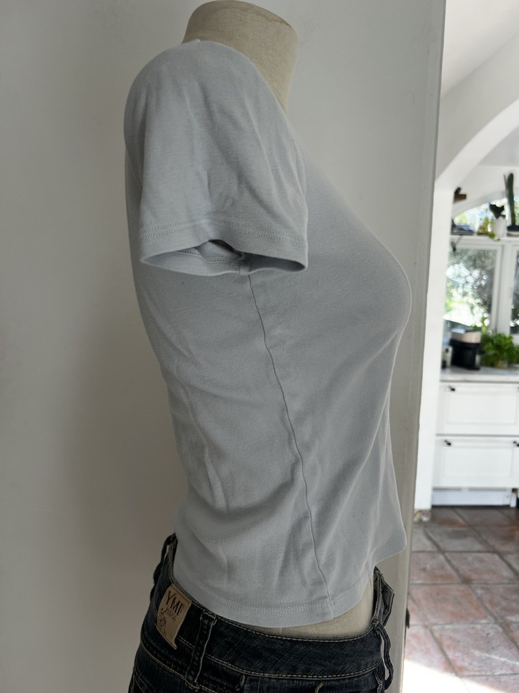 Brandy Melville Light Blue Cropped T Shirt. One size. Measurement from armpit to armpit is 14" across and length from top shoulder to hem is 18". No stains or worn areas. In great preowned condition. Please ask questions if you are unsure of an item's condition or size. I try to describe everything to the best of my ability. All the clothes that I sell are in good to like new condition and any flaws I find will be noted in the description. ***Please be aware that Clothing sizes often vary not only from brand to brand but they also vary from style to style. Different cuts or styles fit differently. Along with noting the size label, I always include "Actual" measurements of the item for sale. You can compare the measurements to something you already have or simply by taking your own measurements. This ensures proper fit to avoid the hassle of returns. It is important to me that you are satisfied with your purchase so you come back and buy again. Also, I try to calculate postage very close to the actual cost. I want to be fair and do not try to make money on shipping or charge any handling fees. I ship to your registered eBay/PayPal address only, because I use them to produce the shipping label and calculate the shipping costs. I will not ship to any other address. Remember to keep your address up to date, it is the buyer’s responsibility to keep their address current. Did you know that aside from saving you lots of money, buying preowned clothing is a form of recycling and is a great way for you to help protect our environment and earth. America alone throws away two million tons of used clothing each year. Loads of wasted clothes often in still good condition end up in landfills. Purchasing and reusing second hand clothing significantly reduces the toll placed on the environment through the production of new clothes. Reusing clothing is great for the environment because there are no new materials, fuel, water, chemical dyes or energy spent in manufacturing. Purchasing preowned items ultimately reduces the demand for natural resources and energy that go into producing new goods. So thank you for considering a purchase of something preowned!