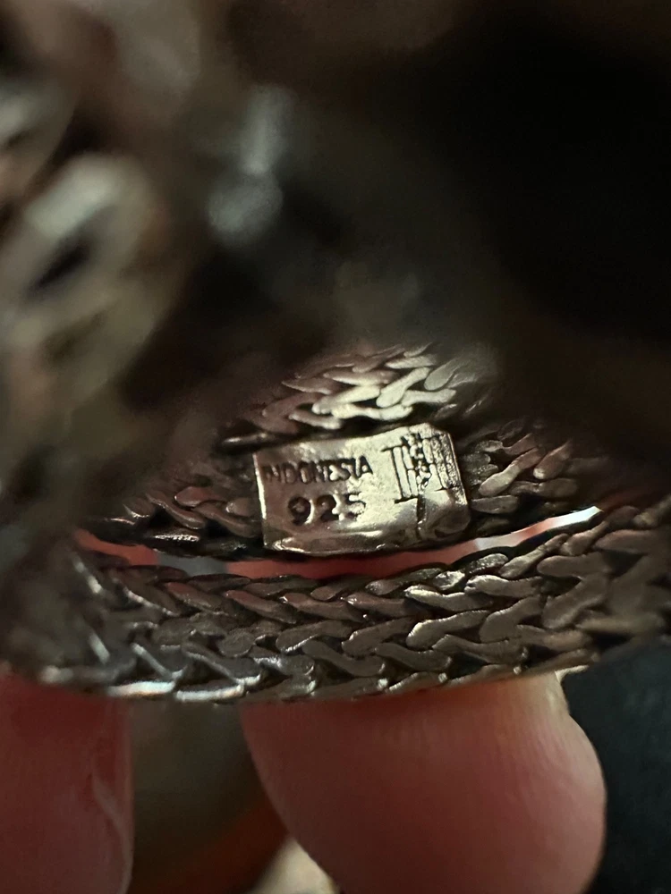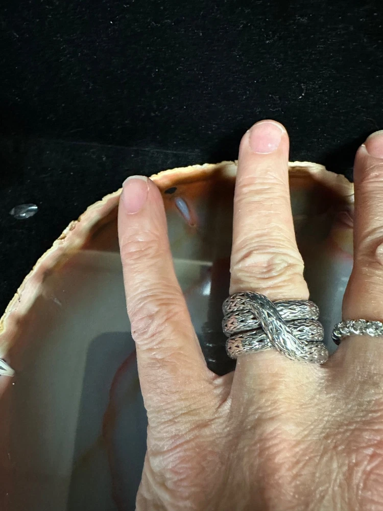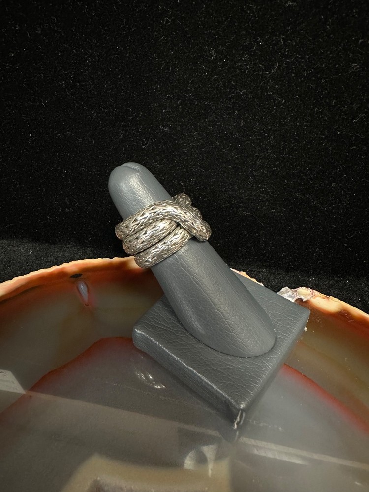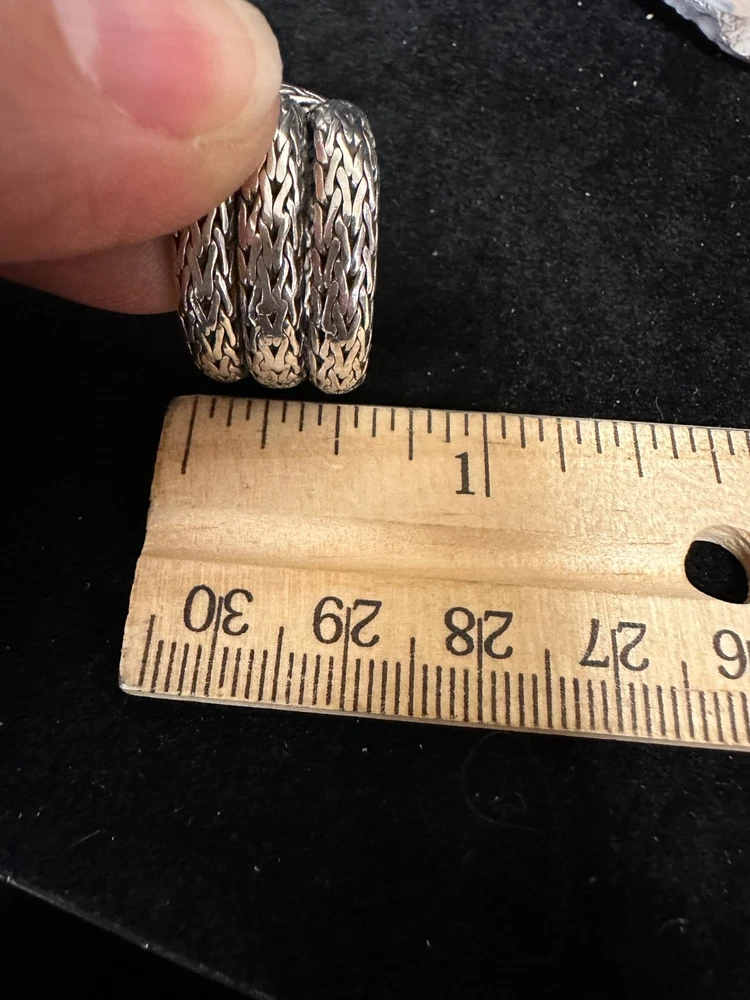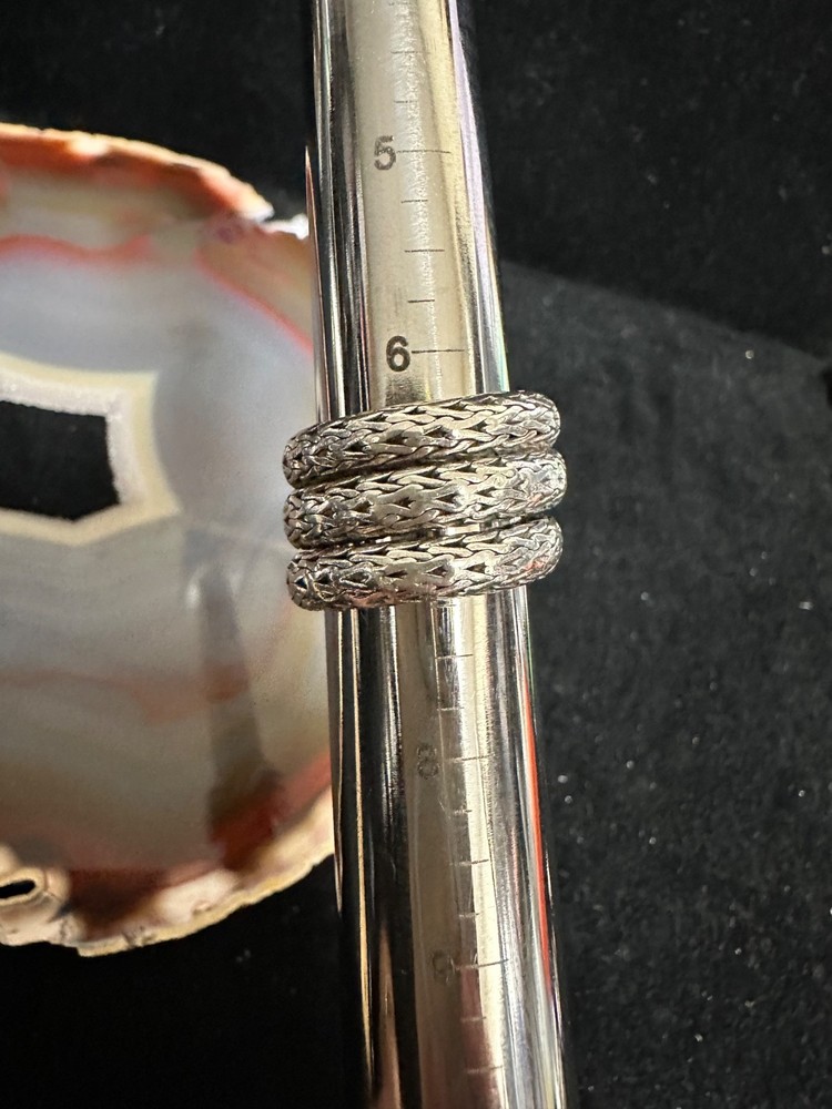 JOHN HARDY STERLING SILVER THREE ROW BAND IN EXCELLENT PRE OWNED CONDITION. THIS BEAUTY HUGS THE FINGER. PLEASE NOTE THE WIDTH, SEE PHOTO.