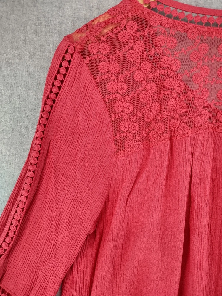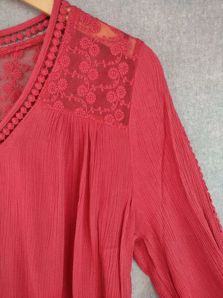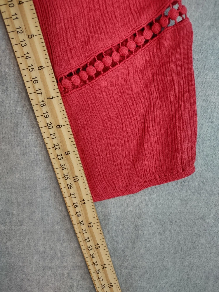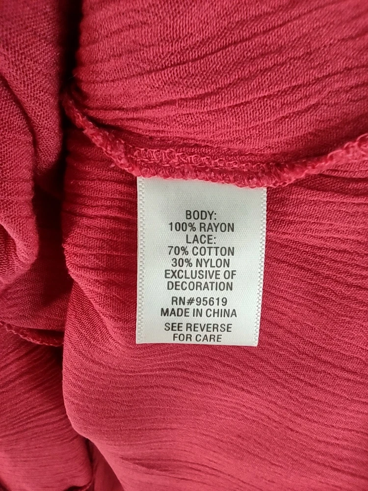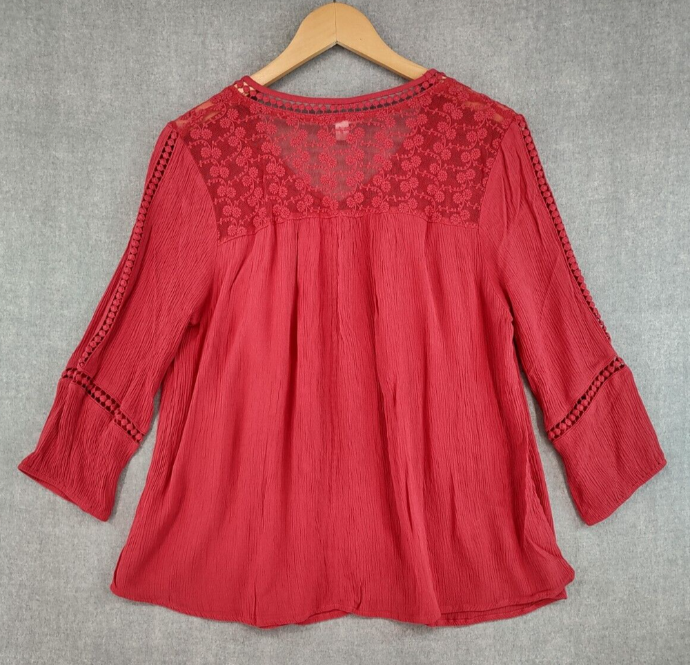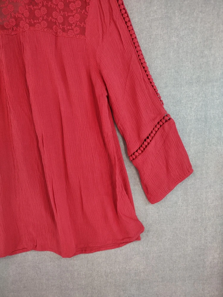 JOHN PAUL RICHARD Crinkle Rayon Crochet V-neck Tunic Top Womens Large Red Bohemian LENGTH: Measured from the top of the shoulder to the hem. WIDTH: Underarm to underarm, measured flat from left to right. SLEEVE LENGTH: Measured from the underarm to the hem. It is always best to compare the measurements above with a top that fits you comfortably. CONDITION - Excellent pre-owned condition. See the photo gallery to view this items measurements and condition. SHIPPED - USPS First Class Mail RETURNS accepted, must be returned within 30 days in original condition to receive a full refund. SHIPPING AND HANDLING We ship all packages within five business days Monday through Friday except Holidays. Consolidated shipping is available for multiple purchases. Thank you for helping our planet and buying previously owned and loved items. I am grateful for your business. Enjoy! Check out our eBay store and follow us. There are new listings daily. CUSTOM SKU: Disclaimer: While we make every effort to capture the most accurate depiction of every item when photographing, colors may vary from screen display to in person therefore we cannot guarantee "exact shade" on any item. Message us if you have questions.