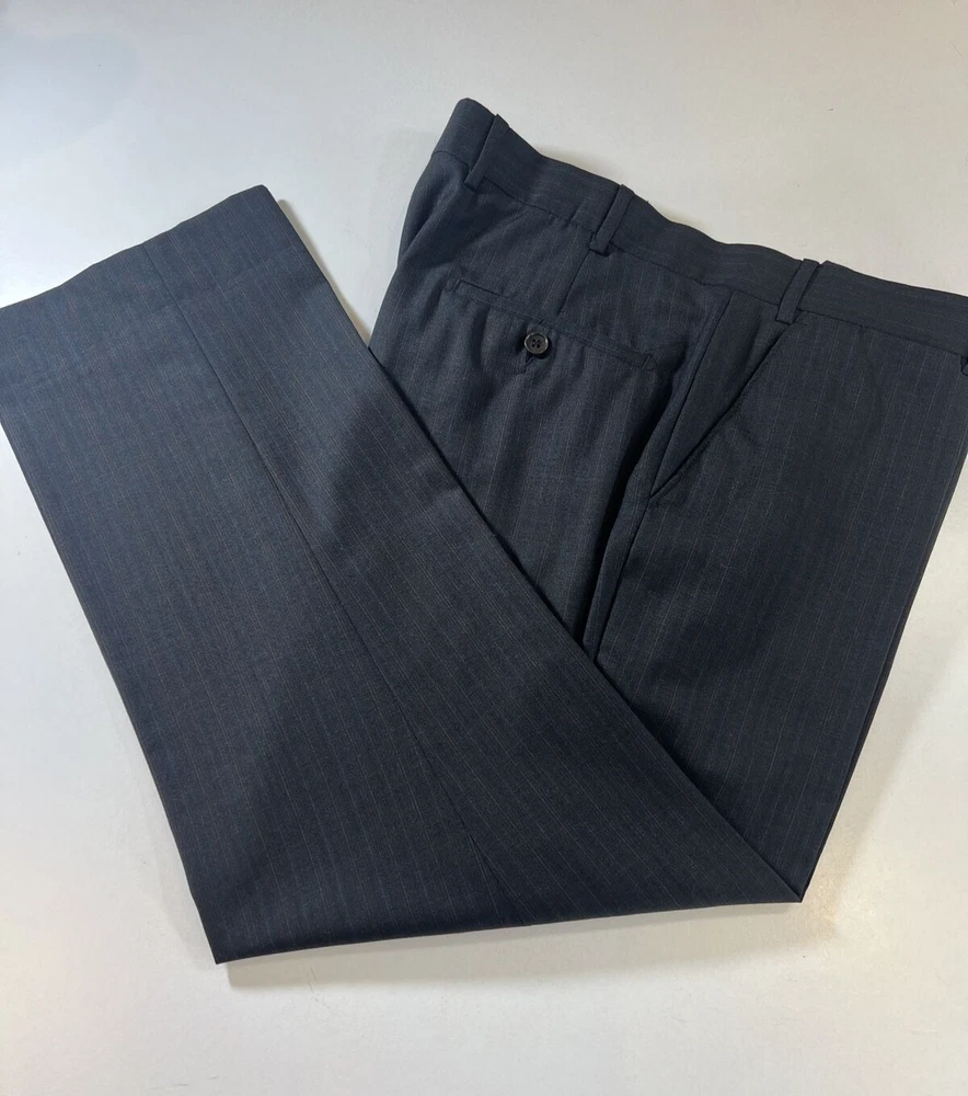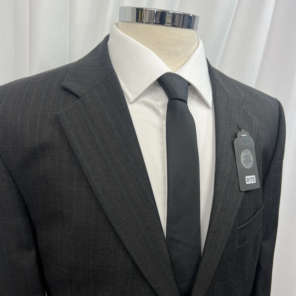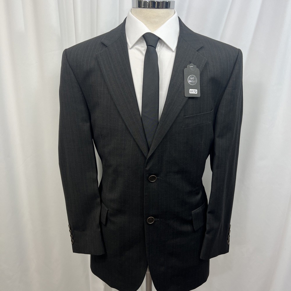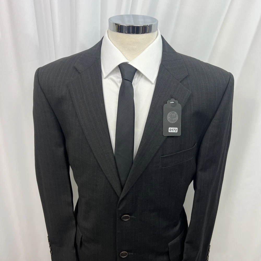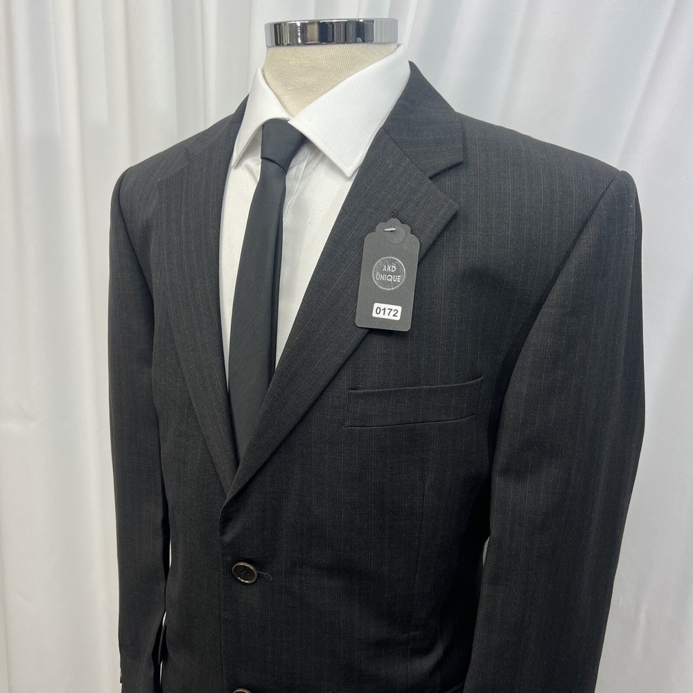 ROCHA JOHN ROCHA Charcoal stripe pure wool 2 piece suit Crafted from high-quality pure wool Jacket Chest: 42S Inside Pockets: 4 Front Pockets: 2 Breast Pocket: 1 Buttons To Each Cuff: 4 Buttons To Front: 2 Back Vents: 2 Shoulder To Cuff: 24.5" Armpit To Cuff: 15" Armpit To Armpit When Laid Flat: 22" Shoulder To Shoulder: 18.5" Collar to Hem: 30.5" Trousers Waist: 36" Zip Front Pockets: 2 Back Pocket: 2 with Button (1 button missing) 1 Button & 2 Hook Fastenings Inside Leg: 28.5" (Can Drop 1 1/2") Width of Hem at Bottom of Trousers: 9" Please note: Colours may slightly vary due to lighting conditions Each item undergoes meticulous hand-measured scrutiny; sizes may not align precisely with the label Review measurements and review the item description/photos before placing your bid Unfortunately, we cannot provide additional photos once items are listed The shirt and tie are not included unless explicitly stated in the listing Questions and concerns: Reach out to us through the ebay messaging system - we aim to respond within a maximum of 12 hours Ironing guidelines: Garments may arrive with minor creases Refer to the care label and use continuous steam when ironing We recommend dry cleaning for best results and peace of mind Your feedback matters: Please leave us a 5-star rating if satisfied For issues or concerns, please contact us before leaving feedback Returns: We offer a generous 30-day return period, via the ebay returns centre Please return items in their original packaging with all tags attached Buyers cover return shipping costs unless items are faulty or inaccurately listed