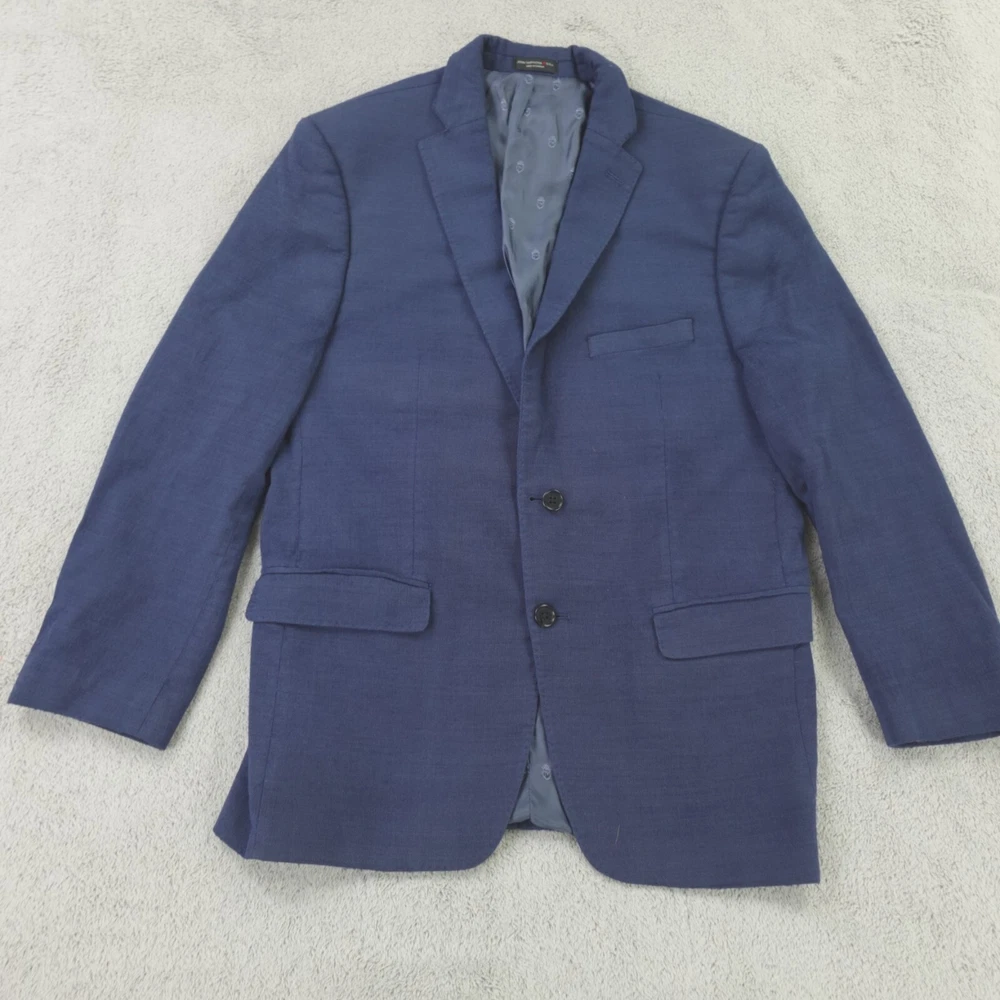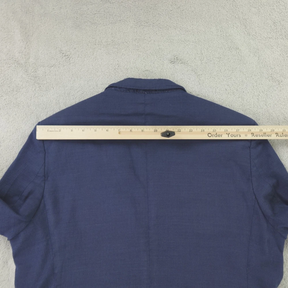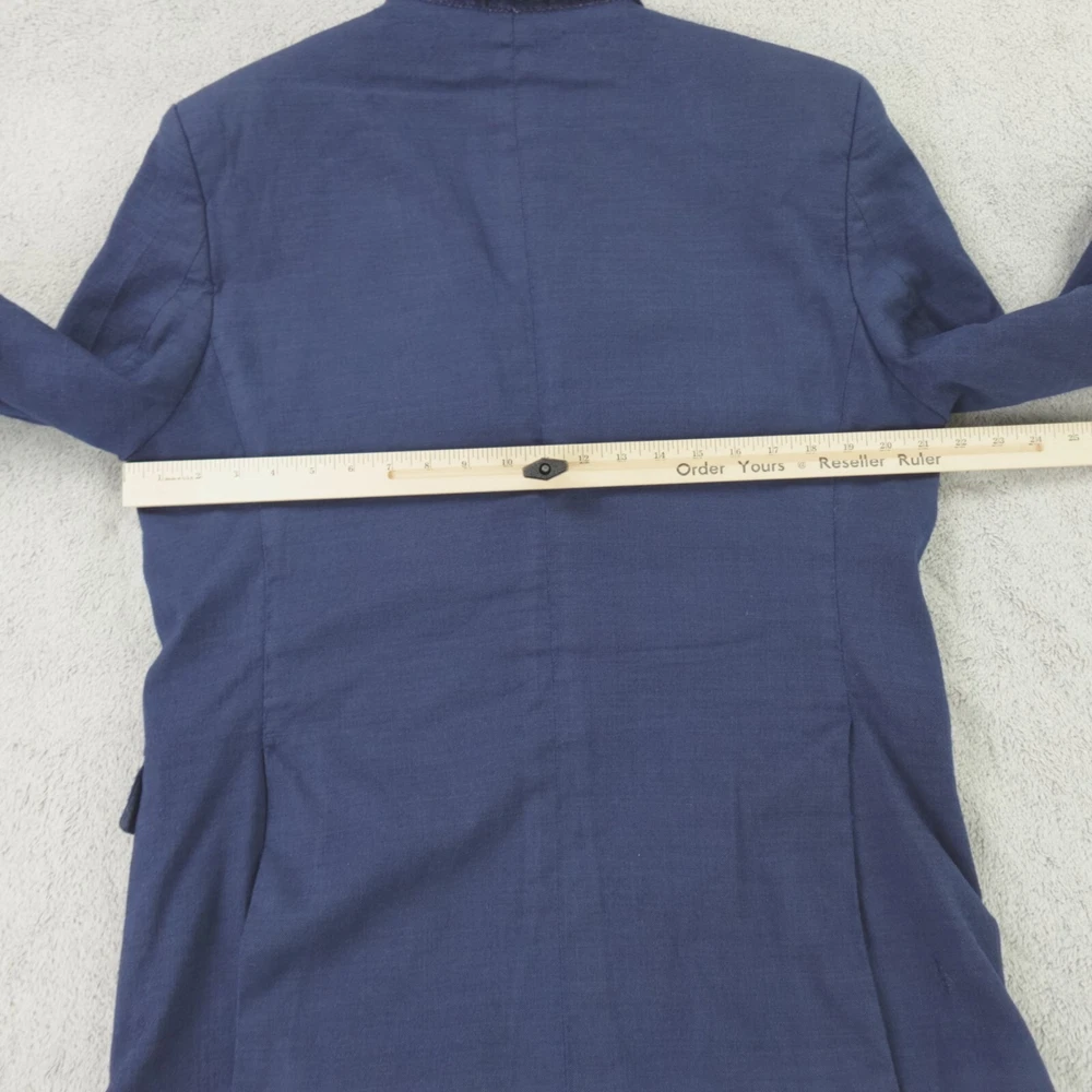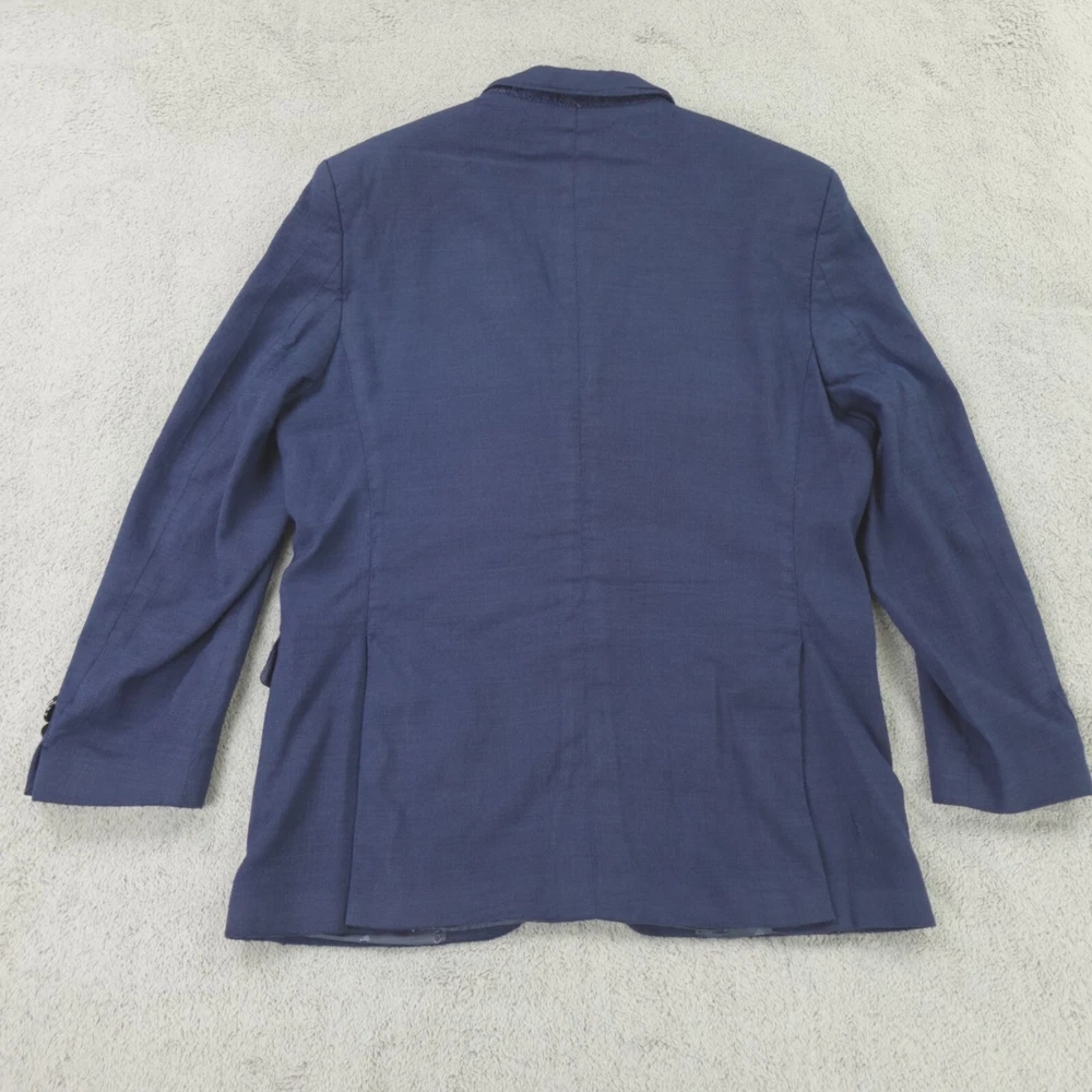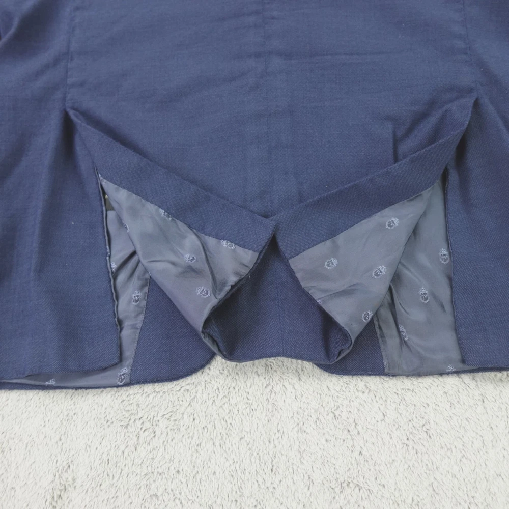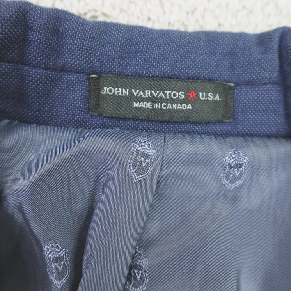 John Varvatos Blazer Mens 44R Navy Blue Wool Blend Marzotto Sport Coat. Blazer is in good pre-owned condition, one flaw is noted on the back bottom right of the blazer as pictured, one of the buttons on the sleeve cuff is partially broken as pictured, no stains, tears, or other signs of wear noted, please review all photos. See photos for measurements. If we missed something, don't worry, we offer free returns. Just indicate, "just didn't like it," for any reason, and we'll pay for the return. Thanks for visiting!