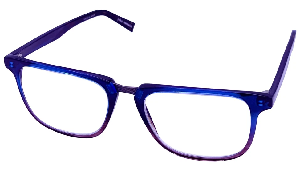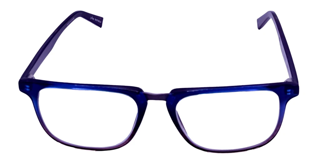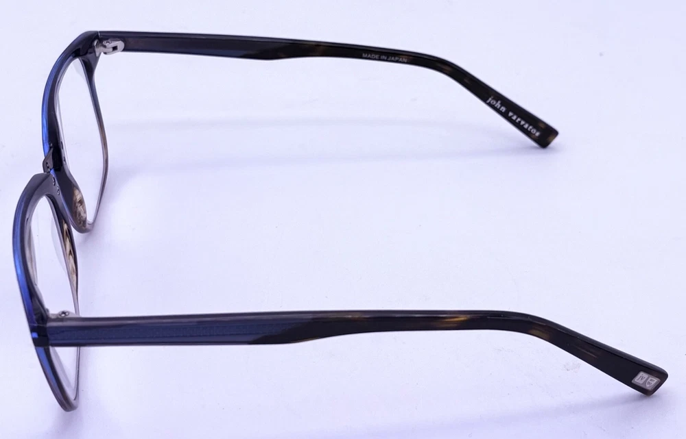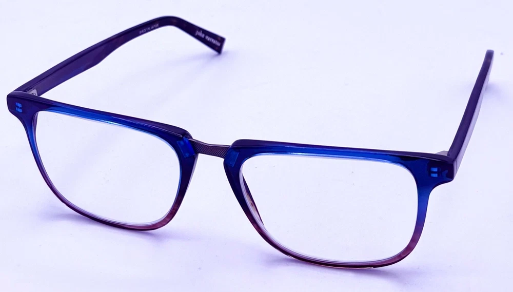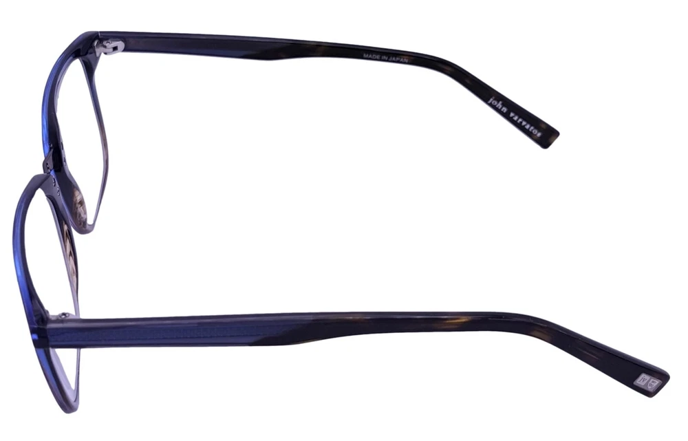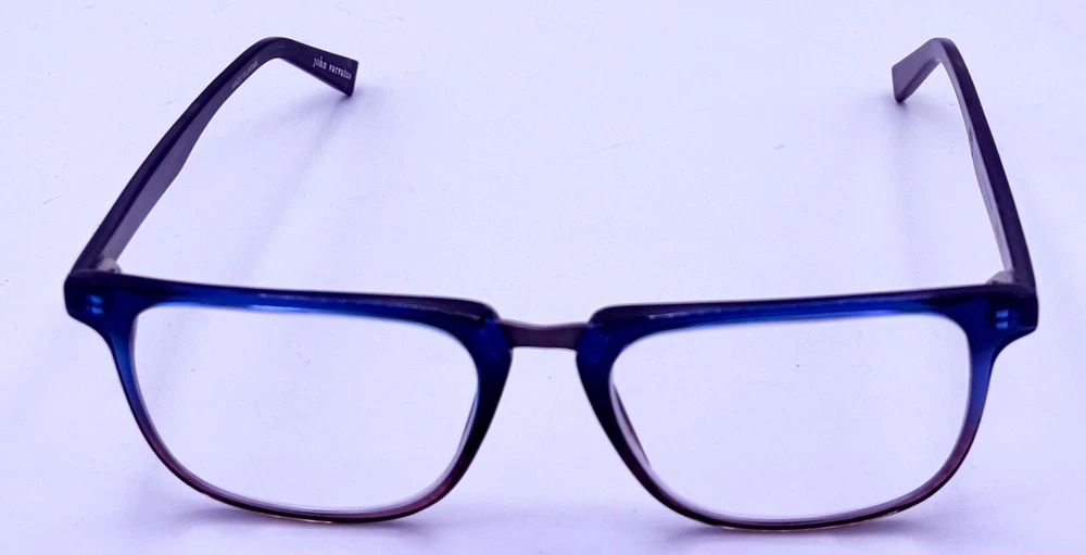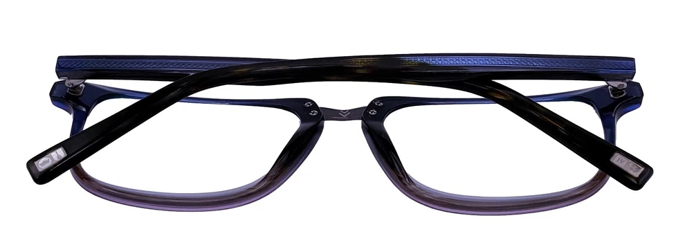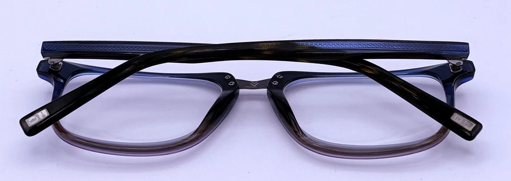 John Varvatos Eyeglasses Rectangle Mens Navy Gradient Eyewear Frame V373. 54mm Molded Plastic Nose Pads Spring Temples Size: 54. 19. 145, Height: 42mm ,Made in Japan, John Varvatos finish metal temple inserts, Ships with a John Varvatos Eyewear Case and Cleaning Cloth Blue Brown Plastic Temples on Each Temple, JV Finished Temple Tips Ships with a John Varvatos Eyewear Case Regular Retail: $350.00 You Pay $99.99 The only one or two we have or will get You can take this to your doctor and have you prescription put in and save a ton on money You Pay Only $99.99 Now