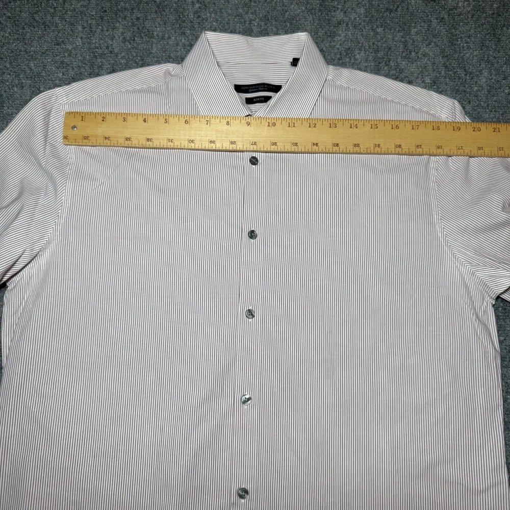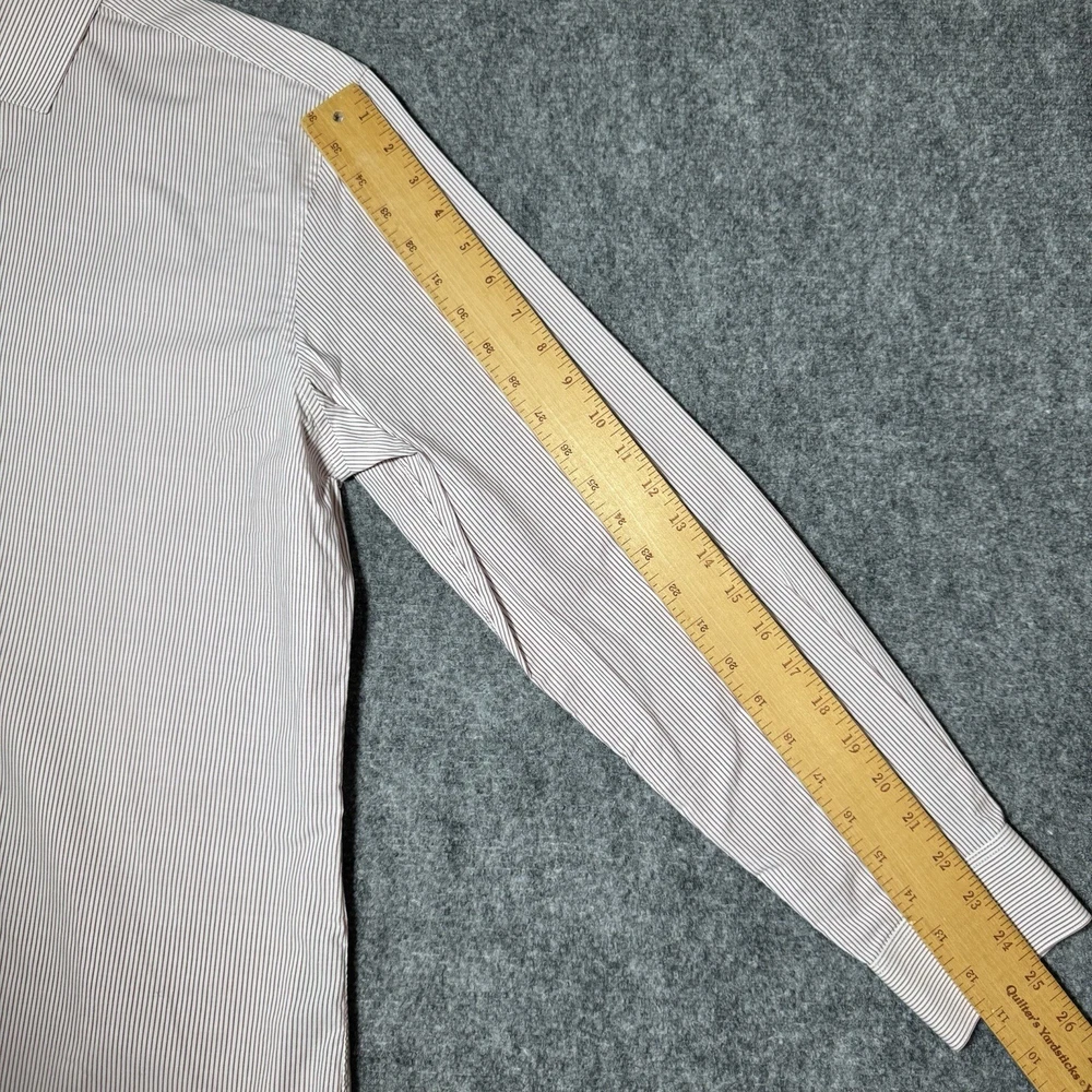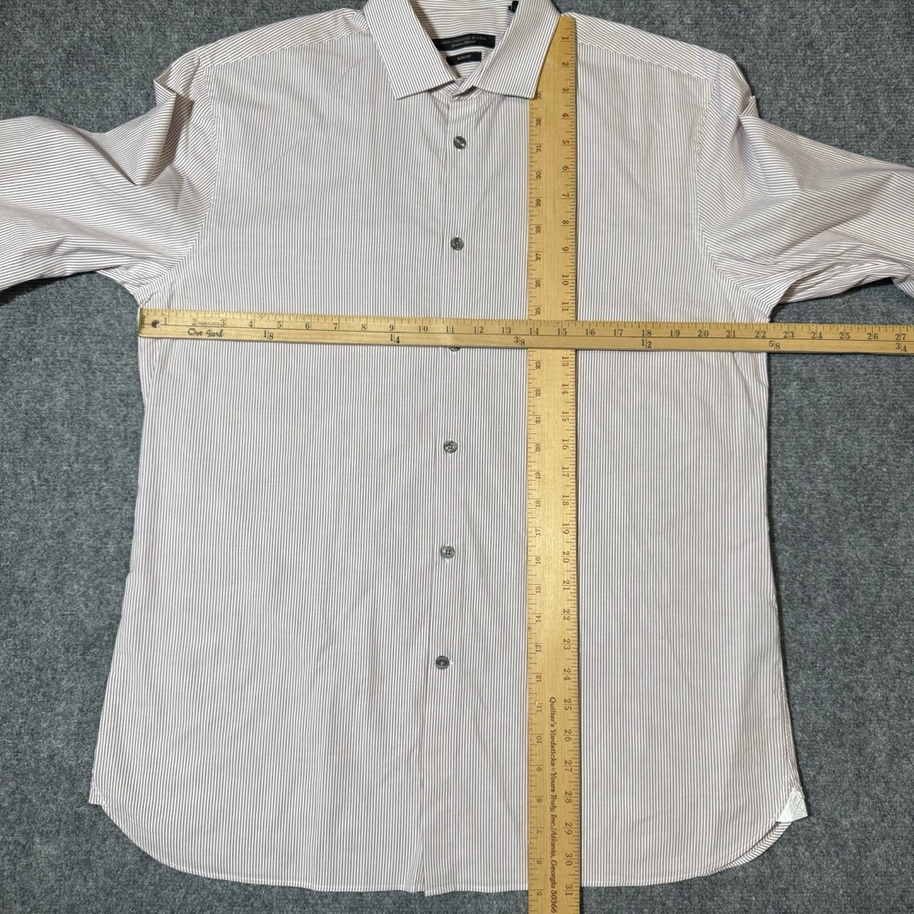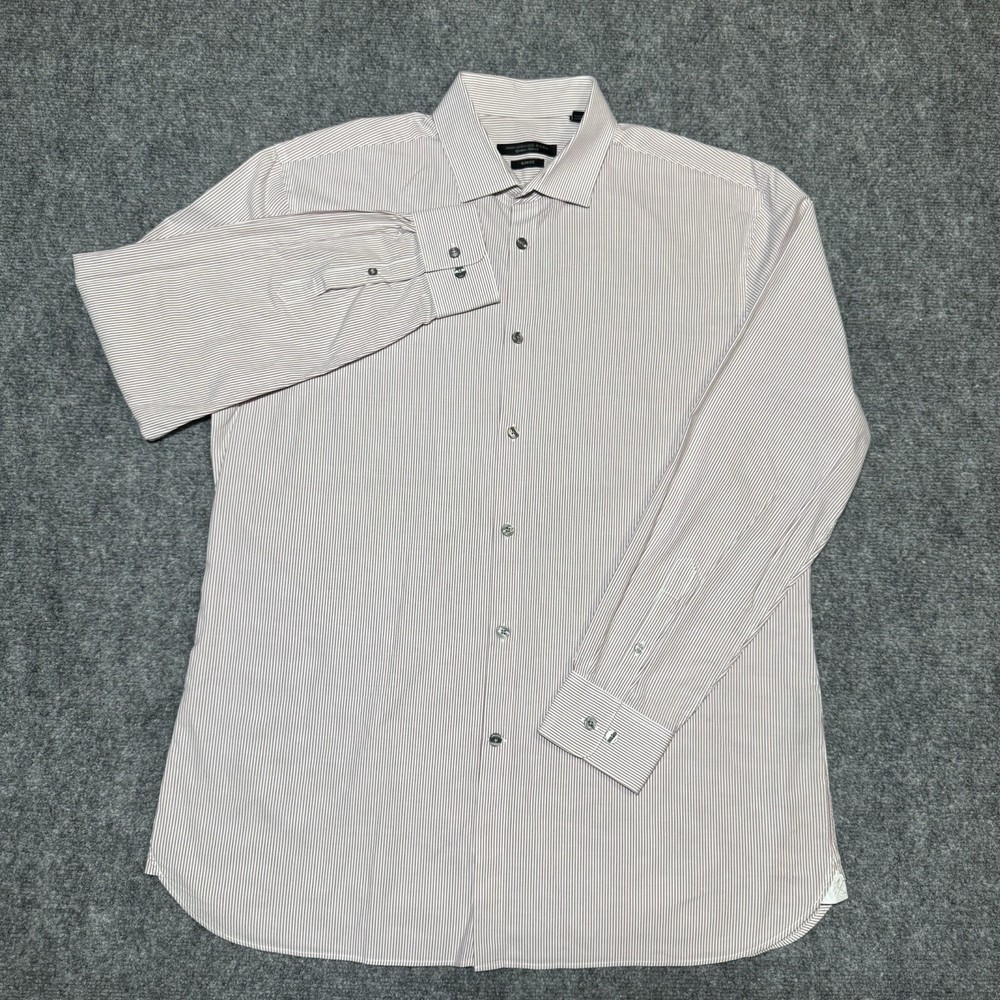 John Varvatos Signature Tailored Slim Fit Pinstripe L/S Large 16.5 34/35 Button Button up is in excellent condition as shown in pictures, size is also shown in pictures. Feel free to ask any questions about this item, all of our items come from a smoke free environment.