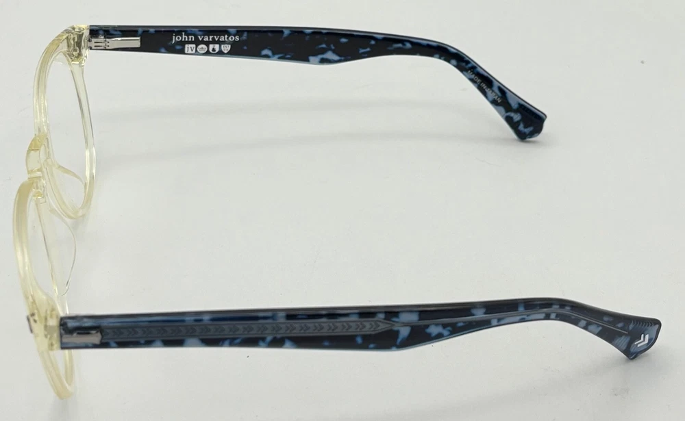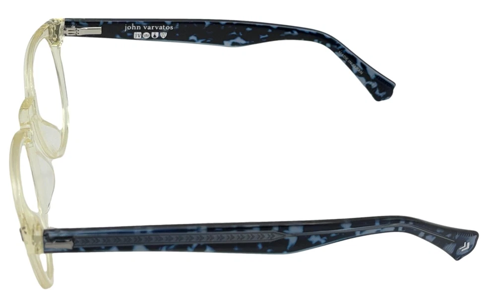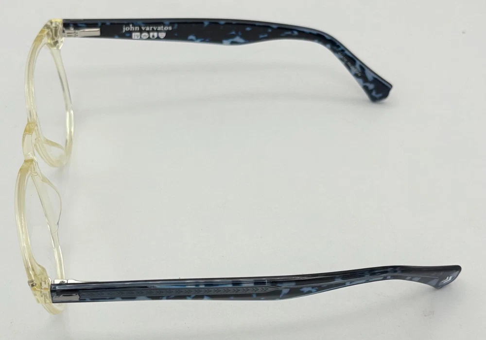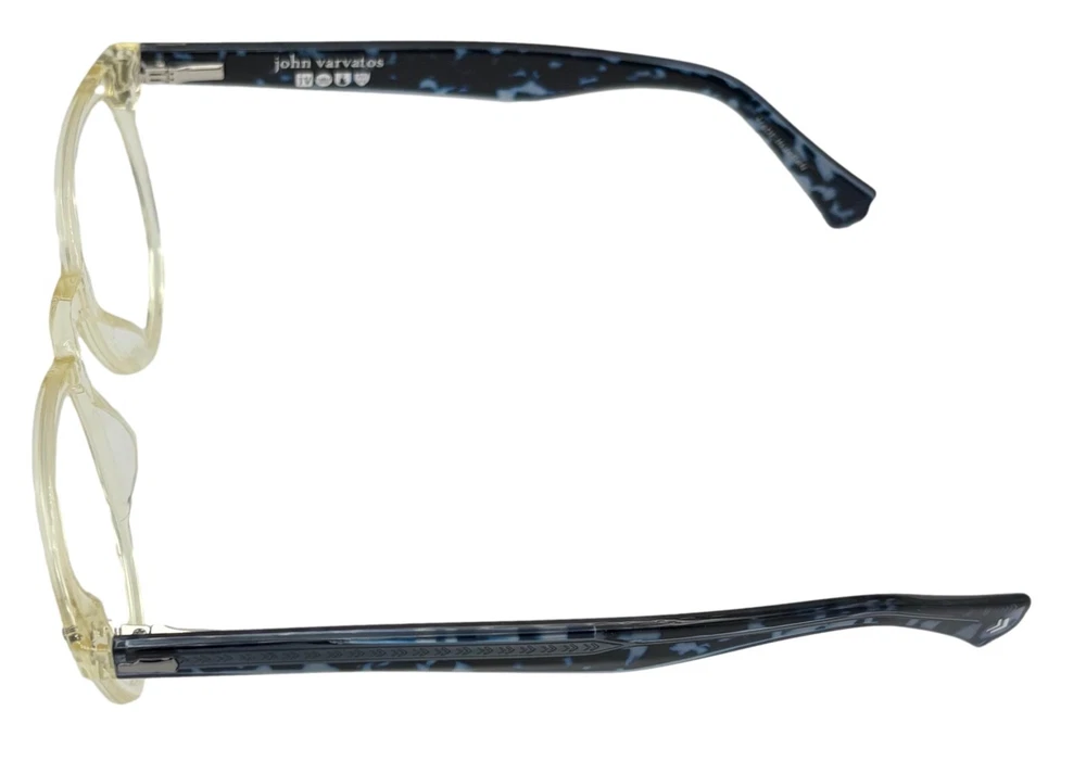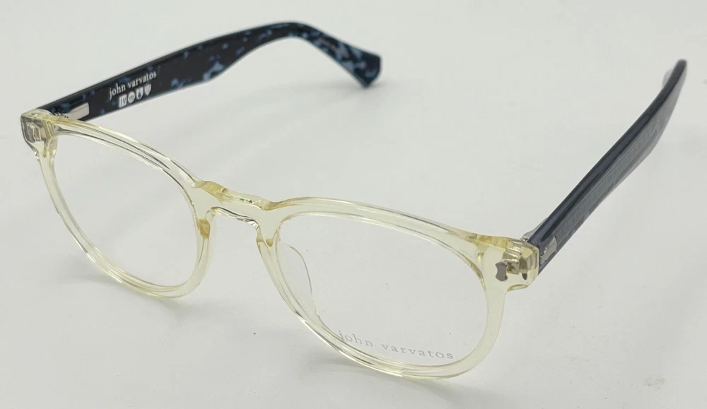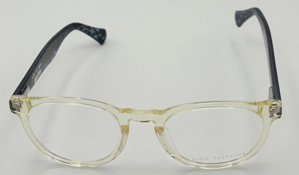 John Varvatos Eyeglasses Square Mens Yellow Crystal Plastic Eyewear Frame V416. 49mm Molded Plastic Nose Pads, Thin Blue Plastic Temple Detail, Size: 49. 21. 145, Height: 42mm ,Made in Japan, John Varvatos finish metal temple tips, Ships with a John Varvatos Eyewear Case and Cleaning Cloth Spring Temples, Ships with a John Varvatos Eyewear Case Regular Retail: $425.00 You Pay $99.99 The only one or two we have or will get You can take this to your doctor and have you prescription put in and save a ton on money You Pay Only $99.99 Now