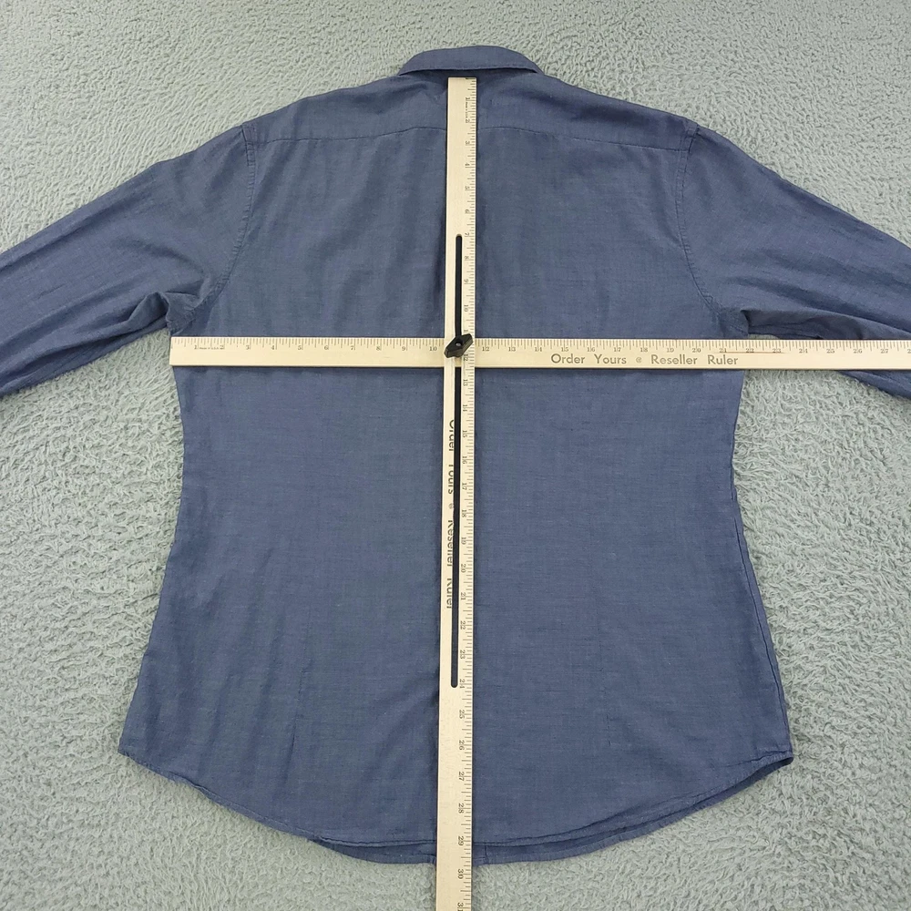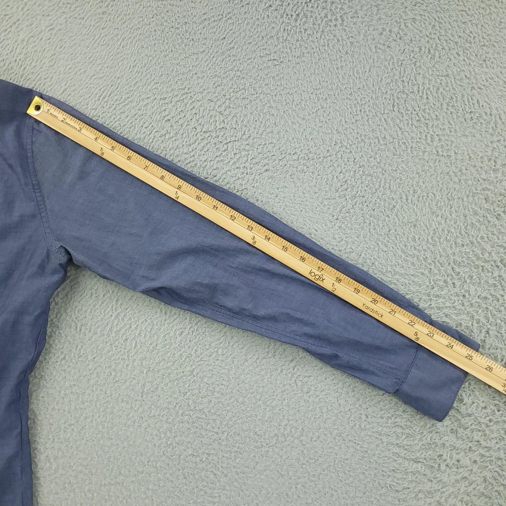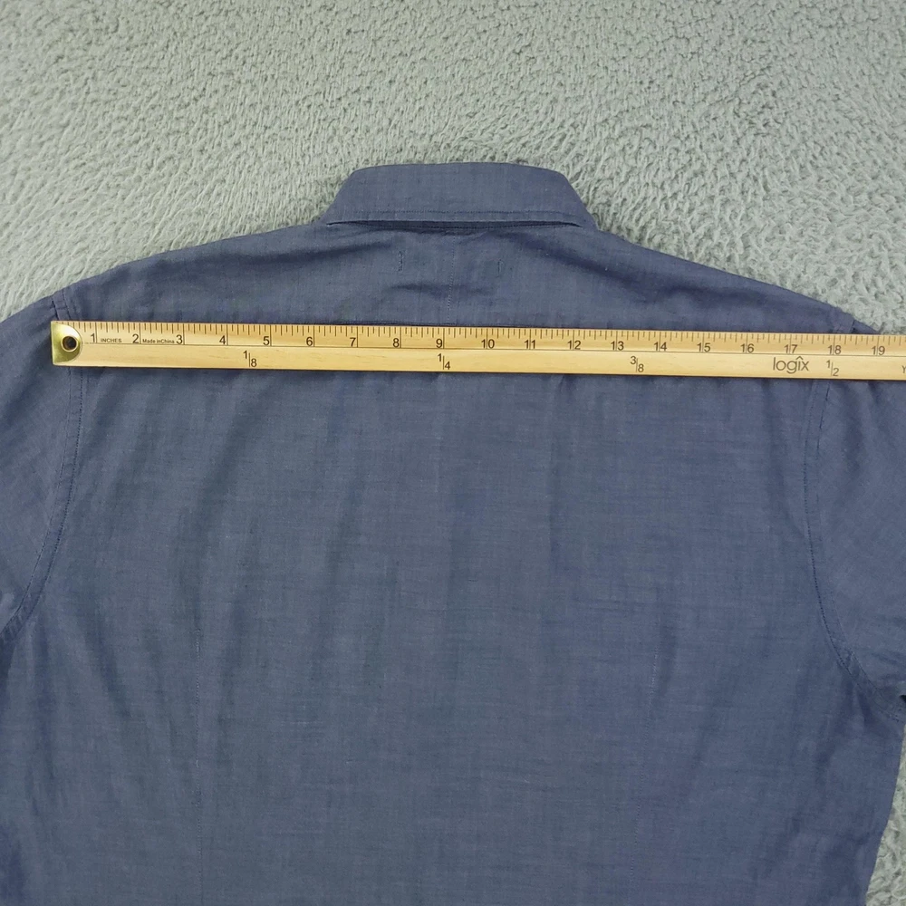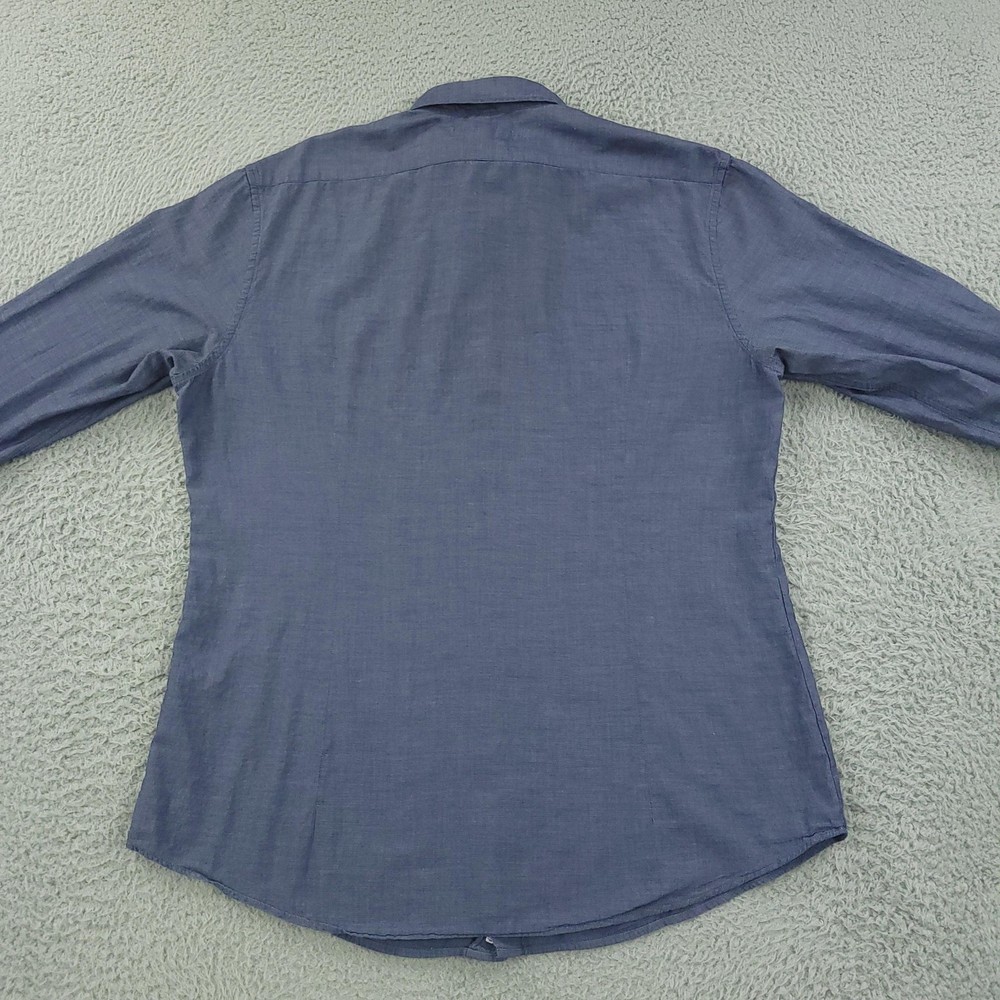 Brand: John Varvatos U.S.A. Type: Mens long sleeve dress shirt with button front closure and collared neckline. Color: Solid blue with a subtle textured weave. Size: Mens XL regular. Details: Point collar, barrel cuffs with two-button adjustment and sleeve placket buttons, curved shirttail hem, no chest pocket. Material: Cotton Washed and dried with Fragrance Free Detergent & Dryer Sheets. Measurements are included in the photos, compare measurements with your item to ensure proper fit. (Measurements are done with the item lying flat). I ship next business day and all items include tracking. Items are added daily to my store Visit My Store Buy More & Save! Combined shipping for US customers - $1.99 for each additional item (Add items to shopping cart and discounts will automatically calculate during checkout)