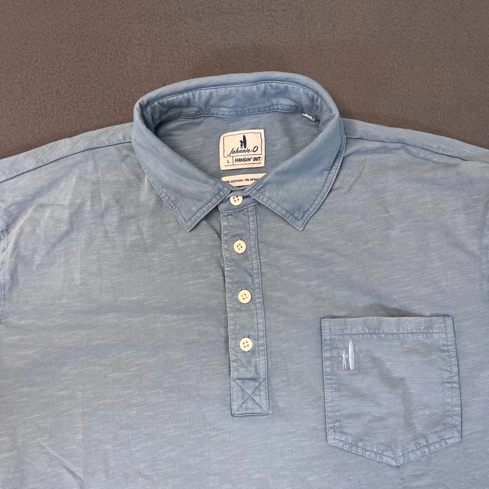 Johnnie-O Hanging Out Polo Shirt Long Sleeve Blue Coastal Men’s large NWOT |