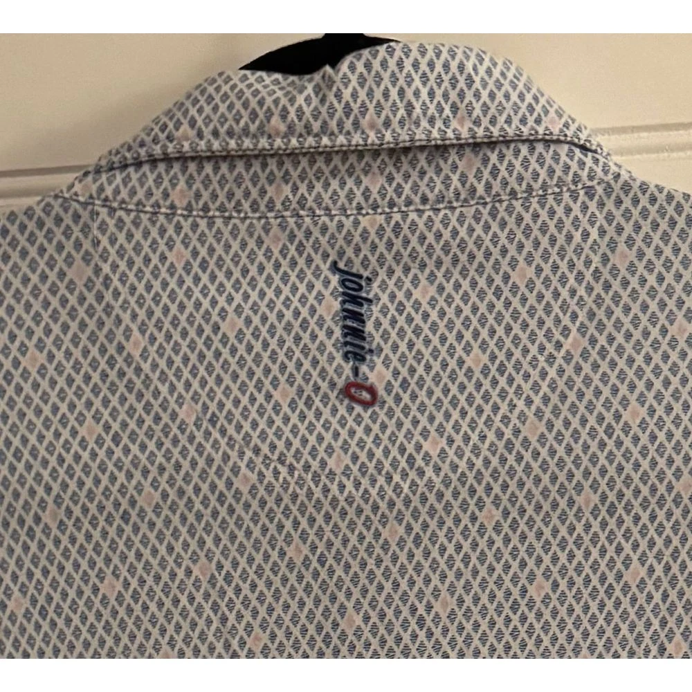 Elevate your casual wardrobe with this sophisticated diamond-patterned polo. Perfect for both office casual and weekend outings, this shirt features a classic collar, short sleeves, and a comfortable fit. The subtle geometric pattern adds visual interest while maintaining versatility. Ideal for summer gatherings, golf outings, or casual Friday at work. The breathable fabric ensures all-day comfort. Collar Style: Point Type: Polo Color: Blue & Pink Sleeve Length: Short Sleeve Department: Men Fabric Type: Woven Closure: Button Pattern: Argyle/Diamond Accents: Button Material: Cotton Blend Fit: Regular Features: Short Sleeve, Breathable, Business Casual, Classic Placket Keywords: mens shirt, diamond pattern, short sleeve, polo, casual shirt, summer shirt, golf shirt, johnnieo, business casual, geometric print,linxter