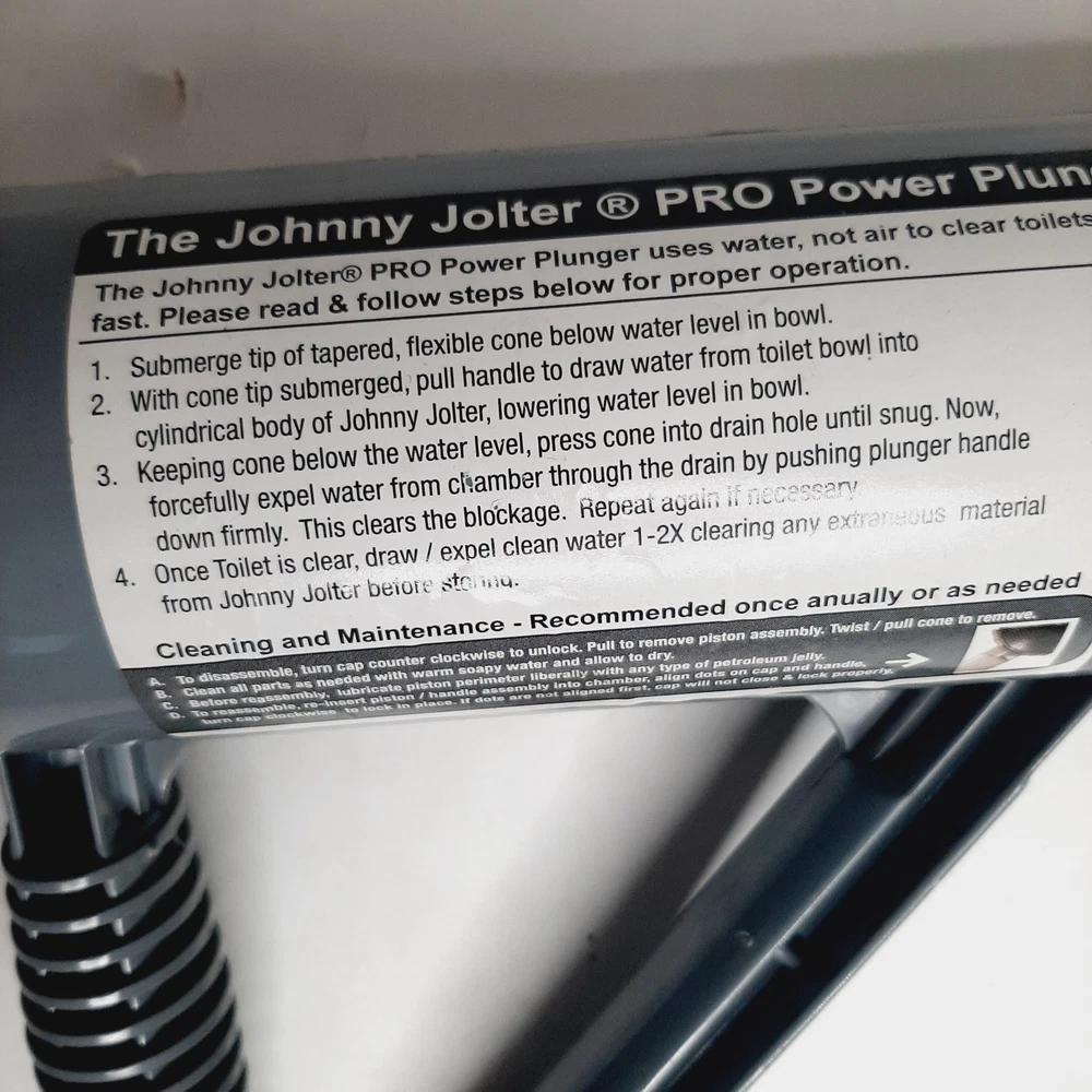 Johnny Jolter PRO Power Toilet Plunger Water Powered Clog Cleaner Tool Brand new