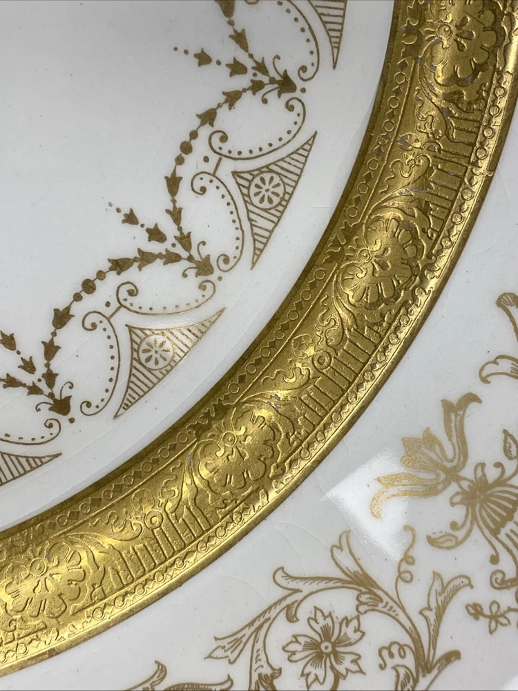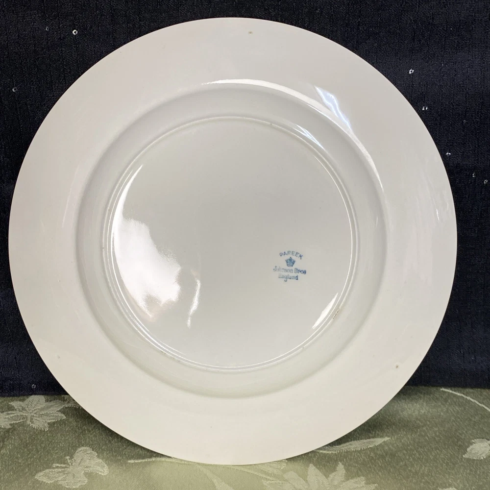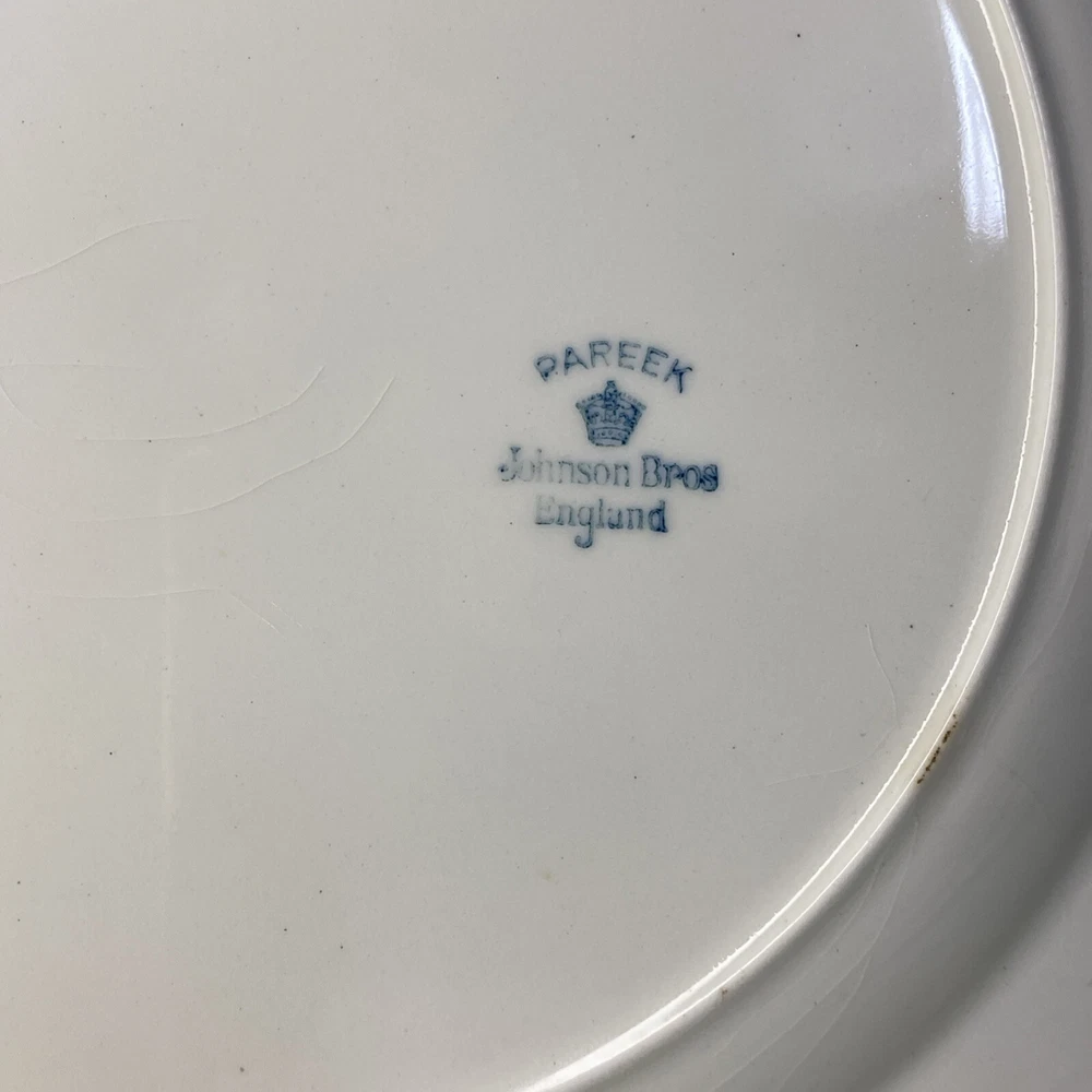 Color: Gold Production Technique: Pottery MPN: na Brand: Johnson Brothers Origin: England UPC: Does not apply Pattern: Pareek Theme: British Set Includes: Plate Antique: No Shape: Round Type: Dinner Plate Number of Items in Set: 1 Features: Raised Gold Filigree Country/Region of Manufacture: United Kingdom gtin13: Does not apply Original/Licensed Reproduction: Original Product Line: Victorian Vintage: Yes Backstamp: Printed Handmade: No Style: Victorian Time Period Manufactured: 1930-1939 Era: Early 20th Century (1911-1940) Material: Porcelain Production Style: not stated Object Type: Dinner Plate