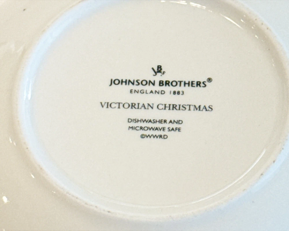 This Johnson Brothers Victorian Christmas Vegetable Serving Bowl from England measures 8.5 inches in diameter and 3 inches in height. Made of porcelain, it features a Christmas tree pattern in white color with a glossy finish. The bowl is microwave and dishwasher safe, part of the Victorian Christmas product line, and bears a painted backstamp. Perfect for festive occasions. Smoke free home Please visit my store at https://www.ebay.com/str/theuniqueredhead . Thank you for your consideration. Please message me if you have any questions. I do combined shipping on my items in the store.