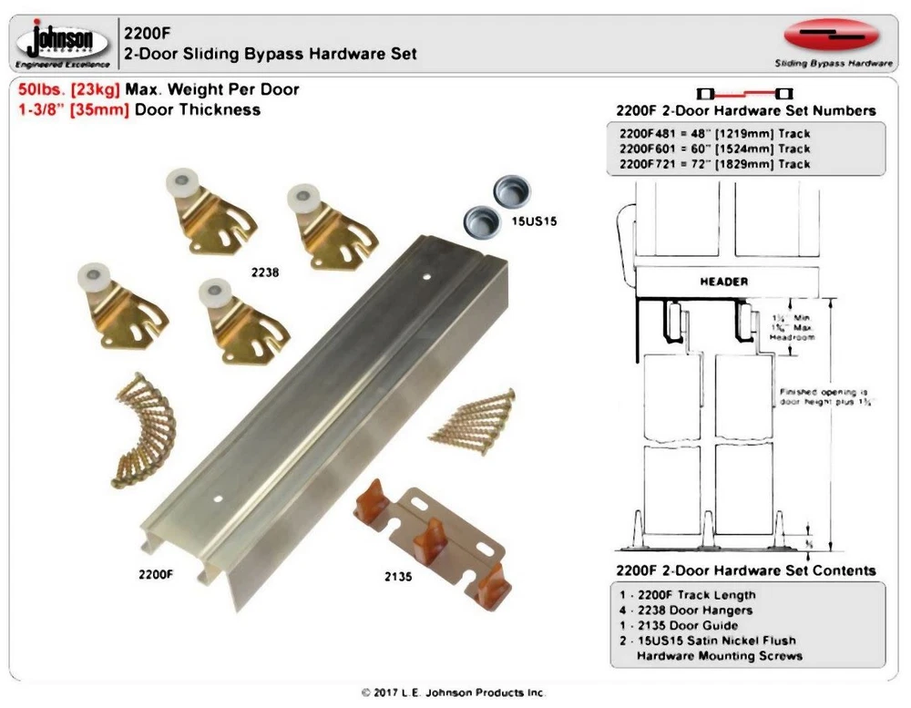 Powered by Frooition All Categories Johnson Hardware JH2200F481 2200F Series 48" Aluminum Fascia Track with Hardware for (2) Bypass Doors Overview Item Description Features: 2200F series 48" aluminum Fascia track with hardware for (2) bypass doors Covered under Johnson Hardware's limited warranty Specifications: Max Door Weight: 50 lbs. Door Thickness: 1-3/8" Max Door Width: 24" x 2 Track Length: 48" Why Choose BuildInc? OUR PROMISE TO YOU About Us At Build, we promise to provide the best selection we can, most competitive pricing, and unmatched customer service. Our store has quality home improvement products from trusted manufacturers like Moen, American Standard, Delta, Kraus, Kichler, Progress Lighting, Schlage, Kwikset, Baldwin, Broan, NuTone, Air King, and Rev-A-Shelf. With over 200,000 home improvement products for you to choose from, we have just what you need to get your project done. Fast & Free Shipping We promise to make it our priority to get you your items as fast as we can. We ship from 440 warehouses around the country, ensuring that your product will get to you as soon as possible. We know you're eager to get your hands on your new purchase, we would be too. As a bonus, most items ship for free. Returns We are happy to accept returns of unused or defective items for a refund within 30 days from the date of delivery. For returns outside 30 days, please contact our Customer Service team to go over our options. For full details, please view the Shipping and Payments tab above. To initiate a return simply go to the eBay Returns Portal and submit a return request. We ask that all items be returned with all original components via a traceable method. Once your return is received and processed, we will quickly get your refund or replacement issued. If for any reason you are unsatisfied with your purchase or for product or warranty questions, please contact Customer Service team for assistance. More Items! View more great items! About Us | Shipping | Returns | Contact Us | FAQ | Collections | Special Offers! Powered by Frooition Frooition Frooition | No-js Template | eBay design, eBay store design, eBay shop design, eBay template design, eBay listing design (ver:froo_no_js) This listing is currently undergoing maintenance, we apologize for any inconvenience caused.