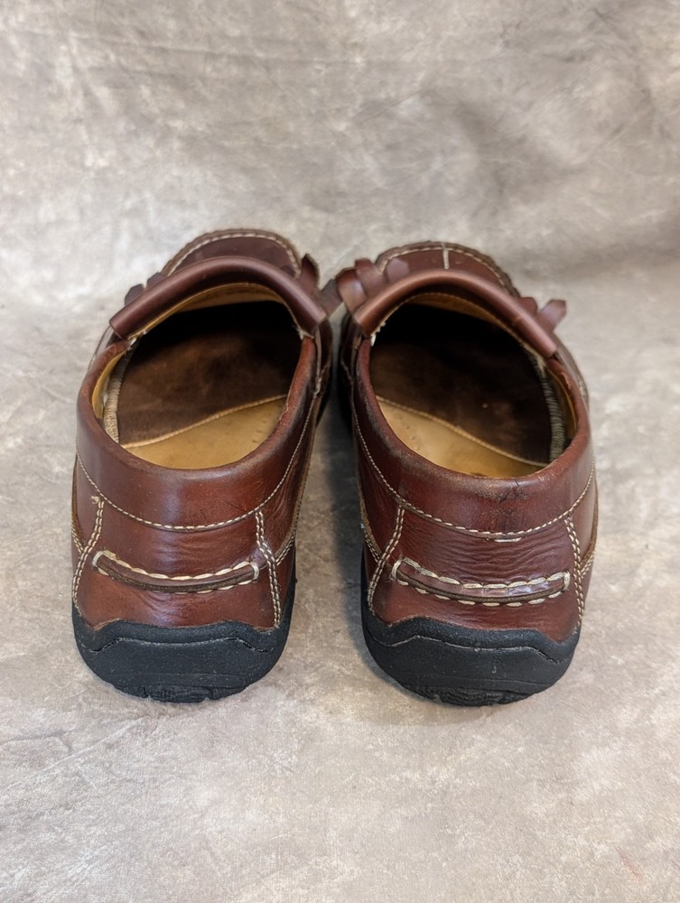 The Johnston & Murphy Men's Size 9 1/2 M brown Tassle Leather Loafers are a stylish and sophisticated choice for any man's dress shoe collection. Made in Brazil, these slip-on loafers feature a solid brown color with tasseled accents, perfect for a polished look. The leather lining and upper material ensure durability and quality, while the leather outsole provides a comfortable fit. Ideal for the summer, fall, and spring seasons, these loafers are a timeless and classic choice for any occasion.