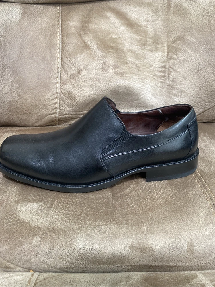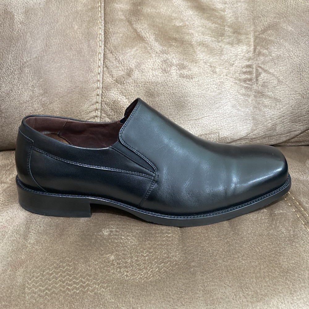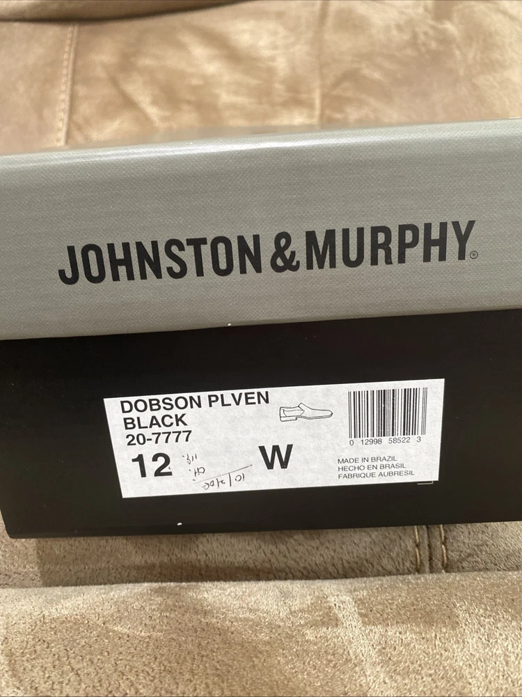 Preowned in EUC Johnston & Murphy Mens Black Leather Dobson Plven 20-7777 Slip Ons size 12W. Please see pics for details.