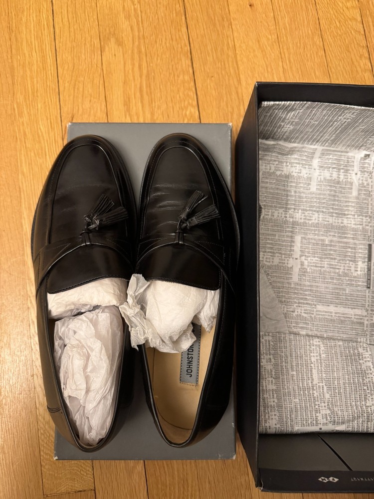 The Johnston & Murphy Men's Dress Shoes in size 10.5M are a sleek and stylish option for any formal occasion. Made from high-quality leather in a classic black color, these shoes are designed to last and make a sophisticated statement. The solid pattern and dress style make them versatile for a variety of events, from a tuxedoed gala to a professional business setting. Perfect for the modern man looking to elevate his attire with a touch of timeless elegance.