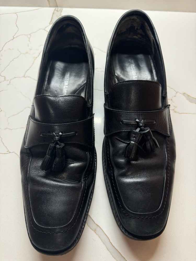 Johnston & Murphy Shoes Mens Size 11 Black Leather Tassel Loafers Dress Slip On