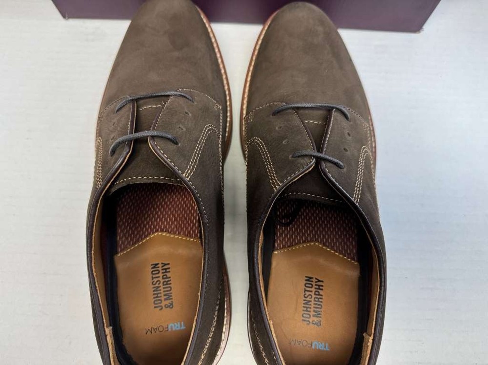 Powered by Frooition All Items See our eBay store for more great items >> Shop Categories Other Shoes and Boots Coats and Jackets Back Braces Wrist Braces Knee Braces Compression Hosiery Socks Camping Gear Misc. Johnston & Murphy Upton Plain Toe Lace Up Dress Shoe, Dark Brown Nubuck, 10.5 M US Item Description Product Category : Shoes UPC : 195113137894 Title : Johnston & Murphy Upton Plain Toe Lace Up Dress Shoe, Dark Brown Nubuck, 10.5 M US Walmart Subcategory : Currently unassigned. Amazon Subcategory : Men's Oxfords Description : Johnston & Murphy Upton Plain Toe Lace Up Dress Shoe The Johnston & Murphy Upton Plain Toe features a lightweight, flexible, and comfortable design with a full-grain leather or water-resistant nubuck upper, a removable memory-foam footbed, and a high-rebound TRUFOAM midsole. It includes a durable double-stitched leather welt construction, a full-grain leather and antimicrobial mesh lining, and a flexible sole with rubber inserts for enhanced traction and durability. The shoe is designed for all-day comfort and is suitable for business casual or casual wear.