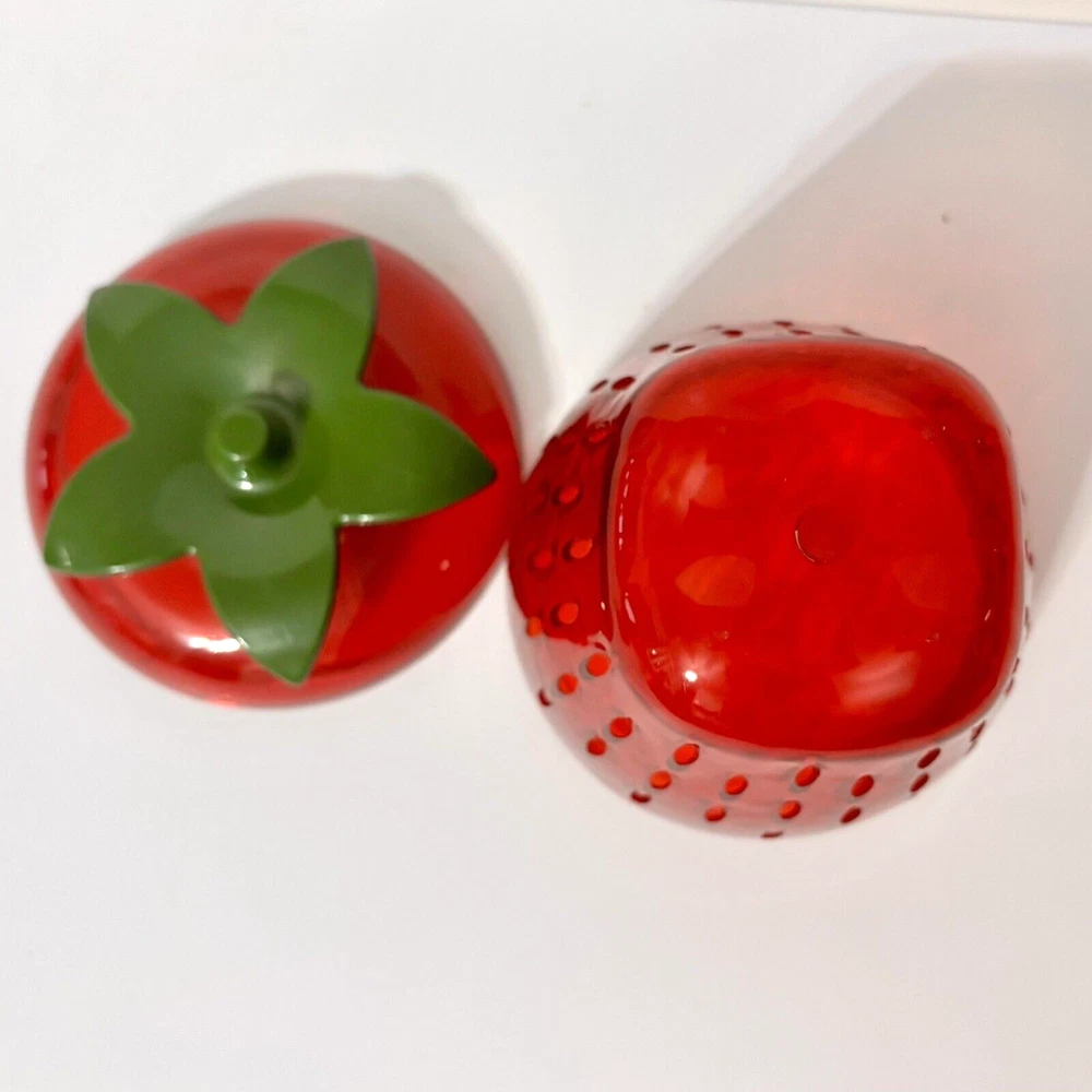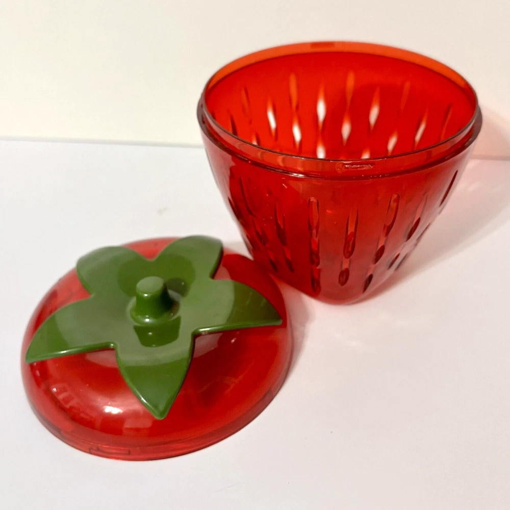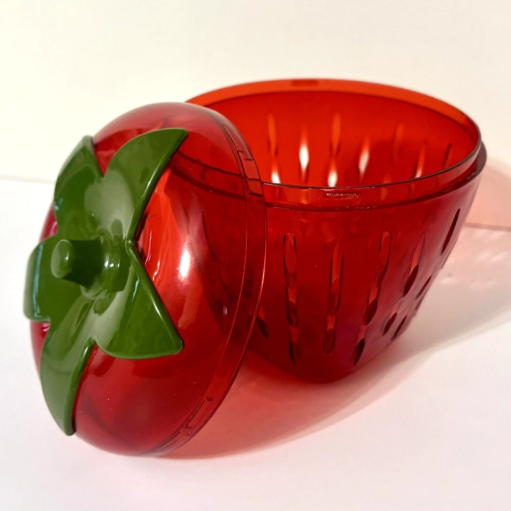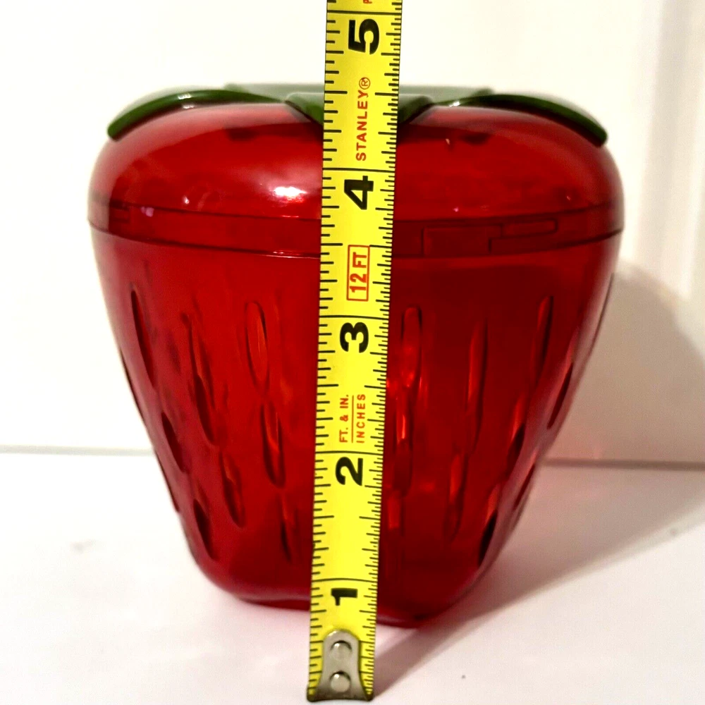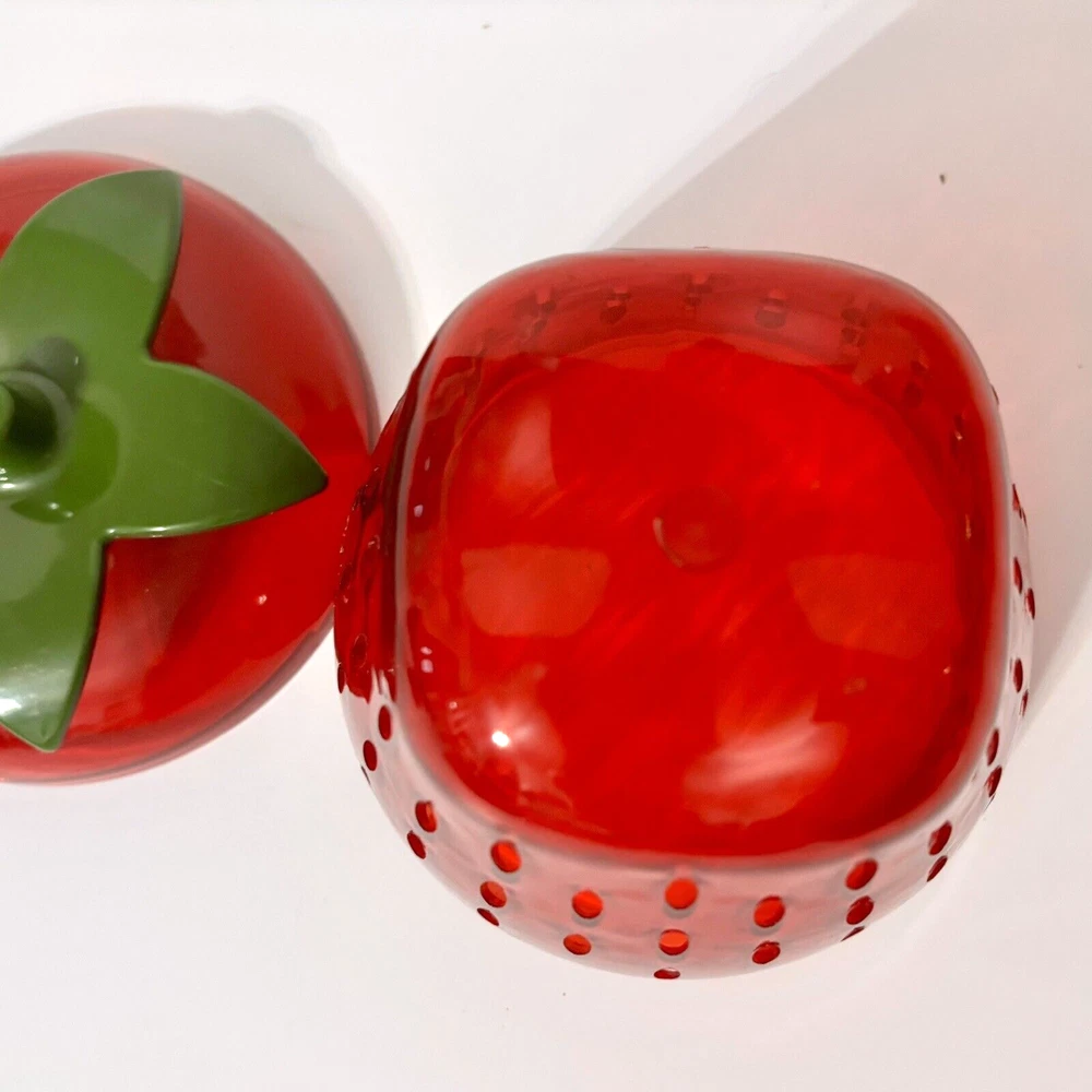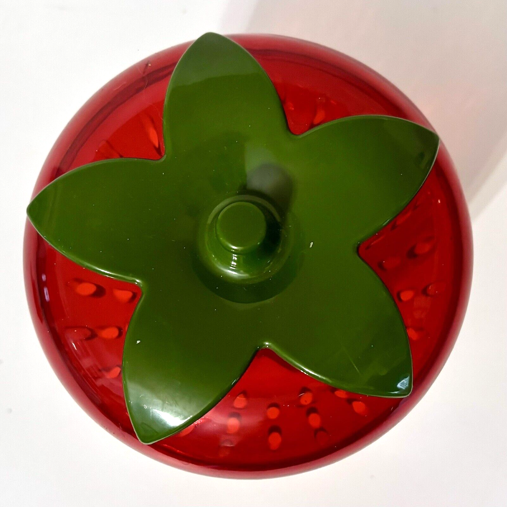 * Brand: Joie * Dishwasher Safe, Reusable * Capacity: 250 Milliliters * Recommended Uses For Product Fruit, berry * Special Feature shatterproof * Keep leftover strawberry halves, wedges, and slices, fresh and firm in the fridge. * Cleverly shaped like a strawberry, this storage pod also helps to organize your fridge in style while eliminating the need for plastic wrap or sandwich bags. * Also works great with other types of berries. * Size: 4.5" x 4.5" x 4.5" * Condition: Great pre-owned condition. Like new.