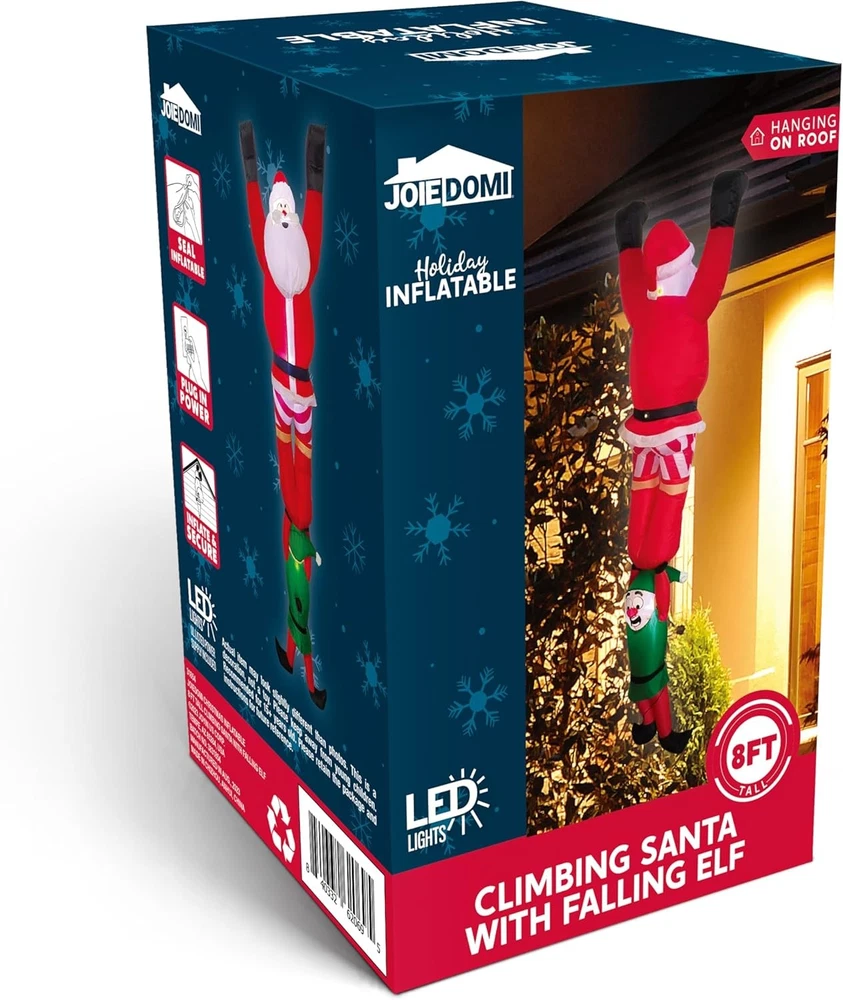 Free eBay listing template designed by dewiso.com Joiedomi 8 FT Hanging Christmas Inflatables Decoration, Christmas Inflatable Climbing Santa with Falling Elf, Blow Up Santa with Build-in LEDs for Xmas Party Outdoor Yard Garden Lawn Decor FREE AND FAST SHIPPING! About this item EXCELLENT DESIGN. This unique Christmas outdoor decoration stands at an impressive 8ft, showcasing a delightful scene where Santa santa is climbing while his pants are playfully pulled off by a falling Elf. The design exudes merriment, making it a memorable addition to your holiday setup. This inflatable comes with an extended cord, fastened ropes, built-in sandbags, and a plug with UL certification. CHEERFUL ATMOSPHERE. The interaction between the blow up climbing Santa and the mischievous Elf creates a joyful and lighthearted atmosphere that perfectly captures the . The comical scene brings smiles and laughter to both young and old, fostering a heartwarming holiday vibe. BUILT-IN LED LIGHTS. Enhance your festive display with the built-in LED lights that infuse a warm and inviting Christmas glow. As the sun sets, your outdoor space will come alive with the magic of the holiday season, drawing attention to the playful characters and their antics. VERSATILE CHRISTMAS AMBIANCE. Whether placed on your front lawn, by the fireplace, or at a holiday party, this Christmas inflatable decoration instantly creates a captivating Christmas ambiance. Its size and playful design make it a versatile choice for various scenarios. EASE OF USE AND SAFETY. Setting up this Christmas decoration is hassle-free, and it's designed with UL certification for safety and peace of mind. The durable materials are built to withstand outdoor elements. Product We offer a 30-Day Return Policy on items which you are not completely satisfied with. You have the option for a full-refund or an exchange of the item. No returns are available on items shipped outside of the US . Shipping We offer Free Shipping to the US and ship within 2 business days of payment, usually sooner. We use UPS express shipping. That's why your products are usually delivered within 3 days . Contact We try our very best to make sure every customer is completely satisfied. If there's a problem , message us! We're happy to help. 24/7 live chat available.