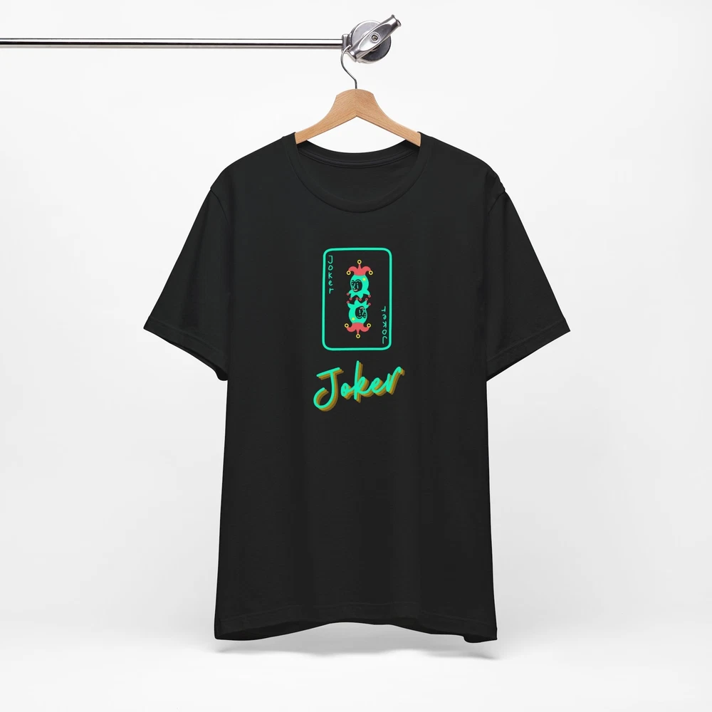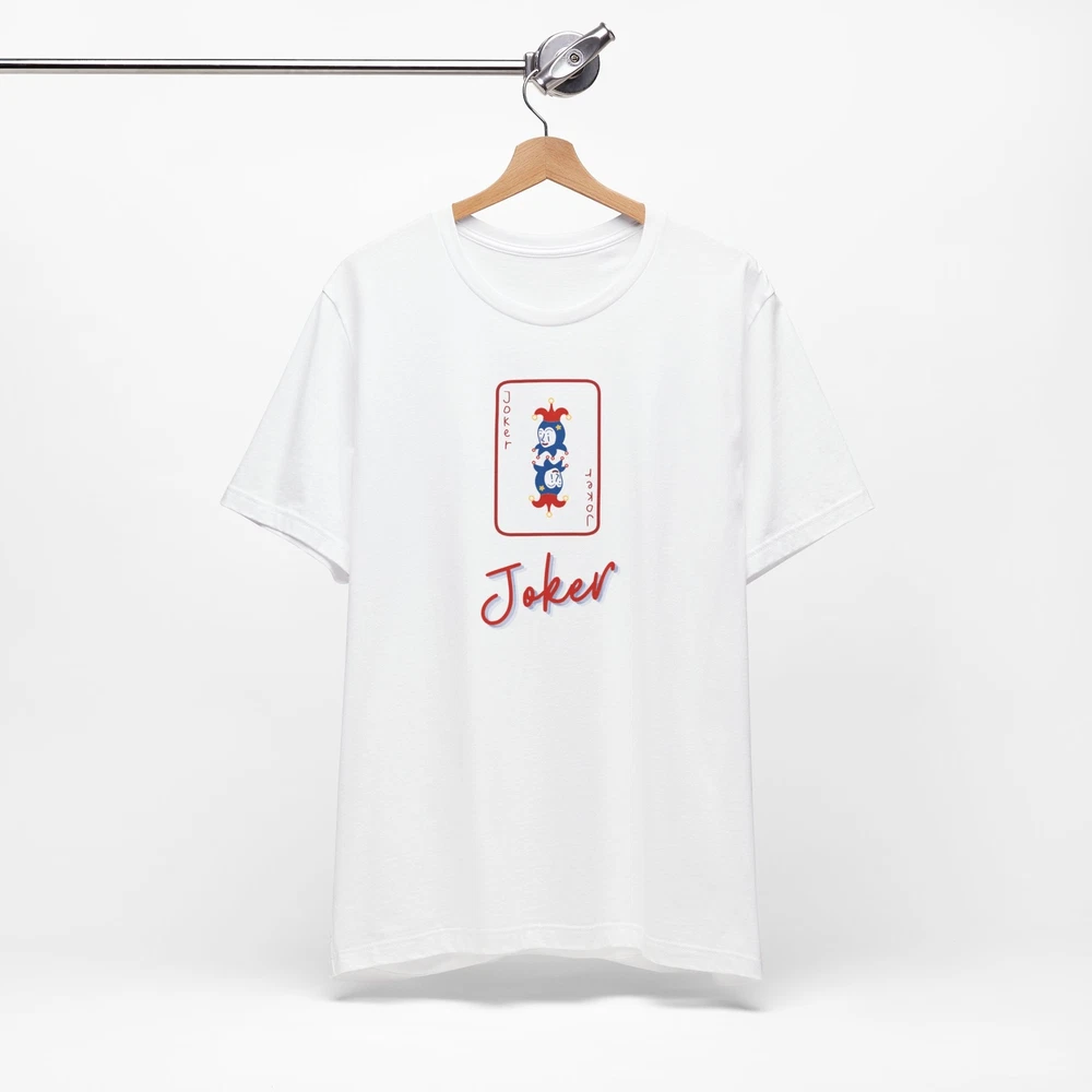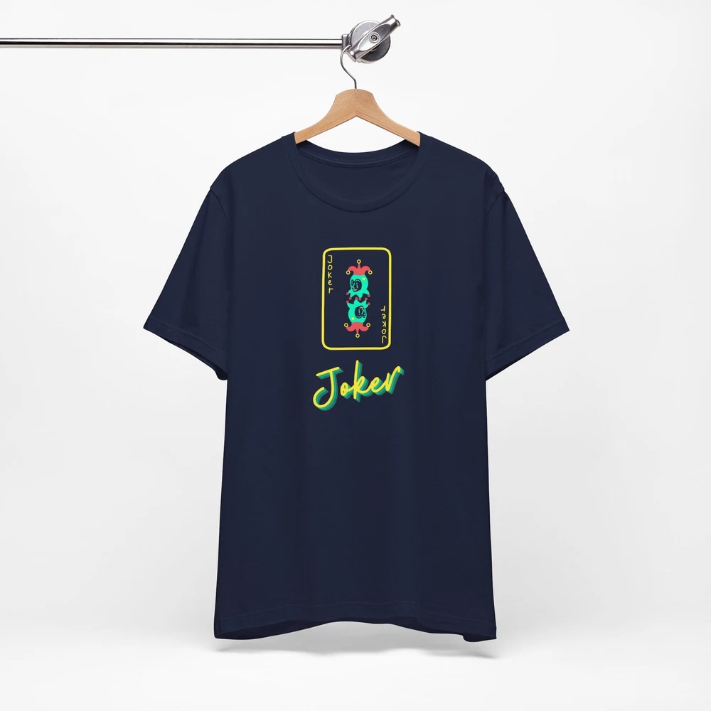 "Step into the world of playful mischief with our 'Joker' T-shirt, featuring a vibrant image of the iconic Joker playing card. Perfect for fans of classic card games and lovers of whimsical design, this tee adds a touch of fun and unpredictability to your wardrobe. Crafted from premium materials, it offers both comfort and style for your everyday wear. Whether you're hitting the town or just hanging out, let this shirt be your ace in the hole. Embrace your inner jester with our 'Joker' tee, available in a range of sizes and colors to suit your unique personality." This classic unisex jersey short sleeve tee fits like a well-loved favorite. Soft cotton and quality print make users fall in love with it over and over again. These t-shirts have-ribbed knit collars to bolster shaping. The shoulders are tapered for a better fit over time. Dual side seams hold the garment's shape for longer. .: Made with 100% Airlume combed and ring-spun cotton, a lightweight fabric (4.2 oz/yd² (142 g/m²)) that is easy to layer, breathable. Perfect for active and leisure wear. .: The retail fit that is perfect for casual and semi-formal settings. The crew neckline adds a classic, neat style that's perfect for accessorizing. .: Bella+Canvas manufactures all its products in the US and internationally in humane, no-sweat-shop, sustainable way and is part of the Fair Labor Association as well as Platinum WRAP certified. .: The tear-away label minimizes skin irritations.