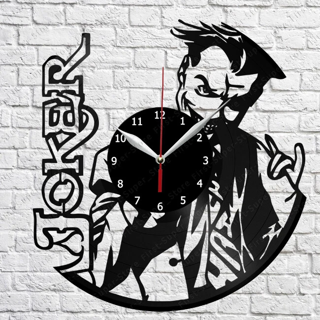 Joker Vinyl Record Wall Clock Condition: New Size: 12" (30cm) Material: vinyl record, built-in hanger, new movement quartz clock mechanism. Our vinyl clock mechanisms work quiet. * Requires 1 AA battery (not included) We pack our wall clocks in a separate protected box. This can be a unique gift for a birthday, anniversary, wedding, Mother's Day, Father's day and so forth. It is a beautiful decoration for hall, living room, office, playroom, kitchen, bedroom, children's room, nursery. Custom order Would you like to create something absolutely original? Nothing could be easier! Feel free to order your own unique design! Shipping We will need around 2-3 working days to make the vinyl clock and send it to you. All buyers will be provided with tracking numbers for their purchases. Shipping only by AIR Mail services. Contact Us Feel free to contact with us if you have any questions. We seek to answer for all messages as soon as it possible but, please note for the time difference about 7-10 hours, that's why some answers may be received only next day.