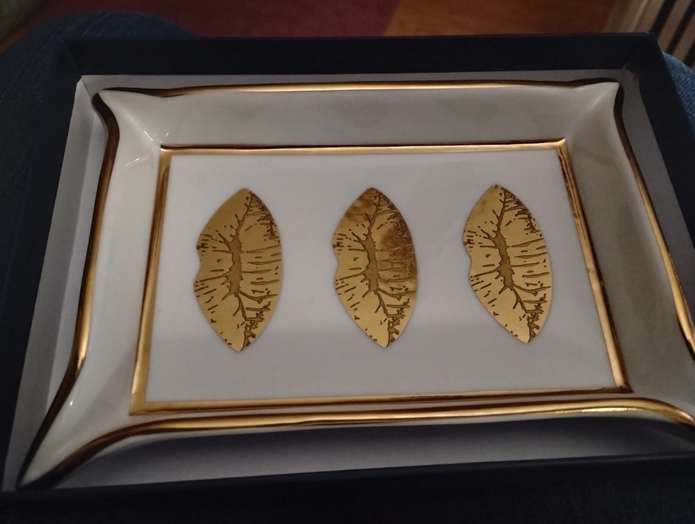 Jonathan Adler white and gold lips valet tray with gift box