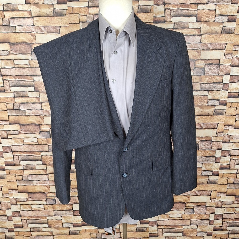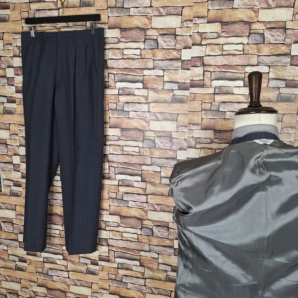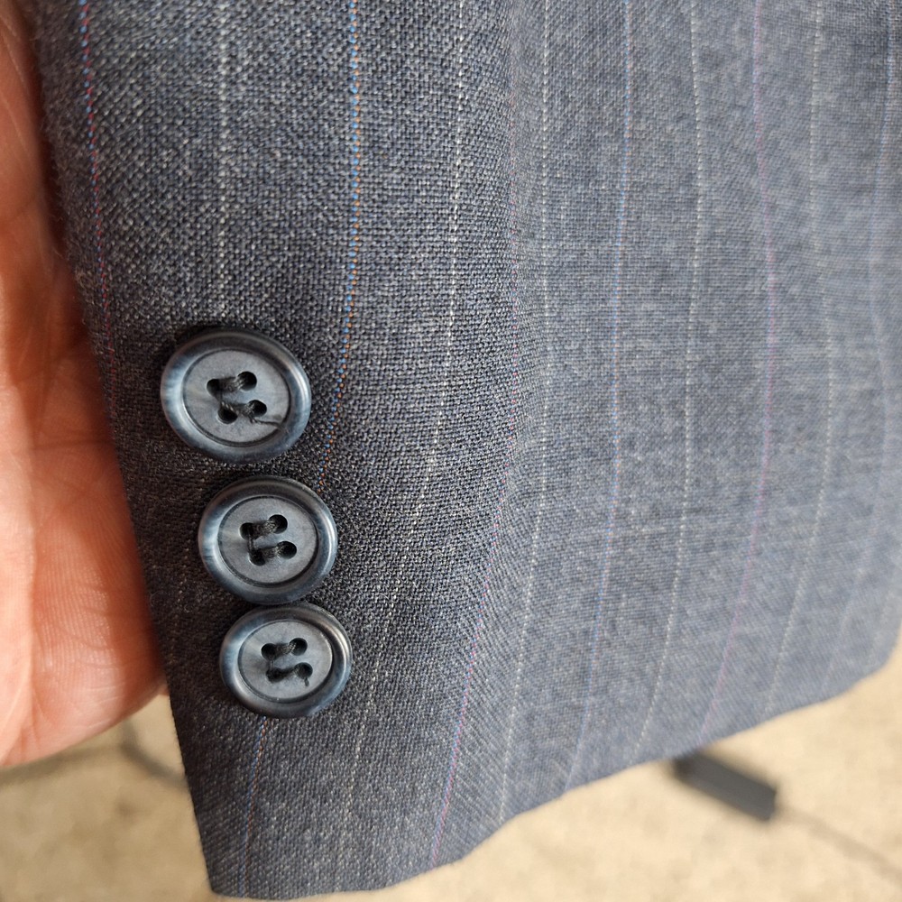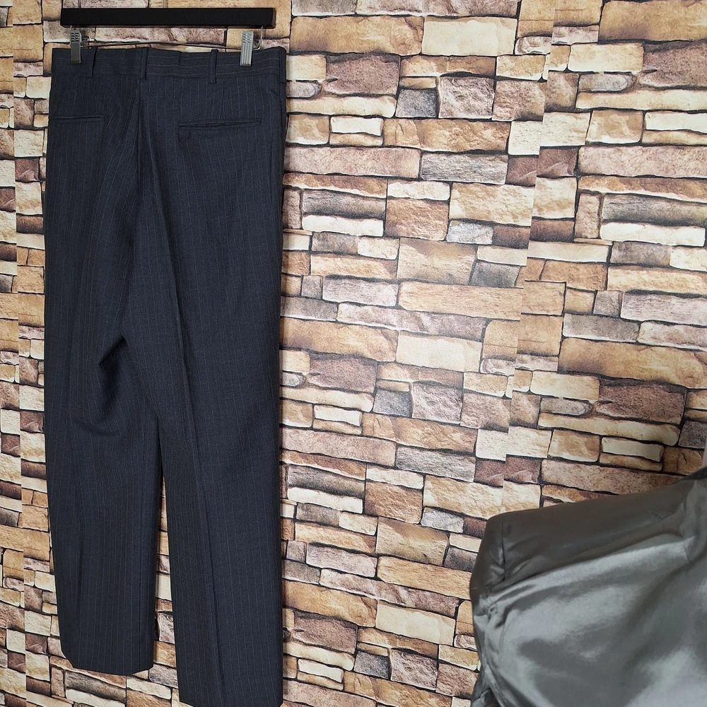 Johnathan Edwards 2 Piece Suit Mens 38R 30X30 Gray Stripe Wool Blend One tiny pokehole in the inner lining other than than fine Shape. Please check out the measurements before buying to ensure a perfect fit. Shirt Size on Label 38R Shoulder- Hem 30.00'' Shoulder- Shoulder 18.50'' Shoulder- Wrist 24.00'' Armpit- Armpit 20.00'' Top button 19.00'' Everything ships within a day. Spot cleaned according to manufacturer's recommendations. Has a chance of wrinkling in the mail. Feel free to message me with any questions. Thank you very much. 5/1/25 Pants Pleated Quality used condition. Please check out the measurements before buying to ensure a perfect fit. Pants Size on Label Ankle Opening 8.00'' Waist 30.00'' Waist- Crotch 11.00'' Inseam 30.00'' Extra inseam fabric 2.30'' Everything ships within a day. Spot cleaned according to manufacturer's recommendations. Has a chance of wrinkling in the mail. Feel free to message me with any questions. Thank you very much. 5/1/25
