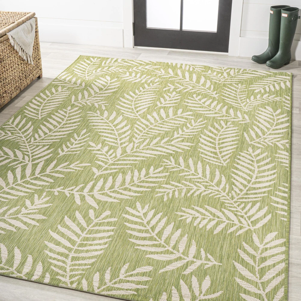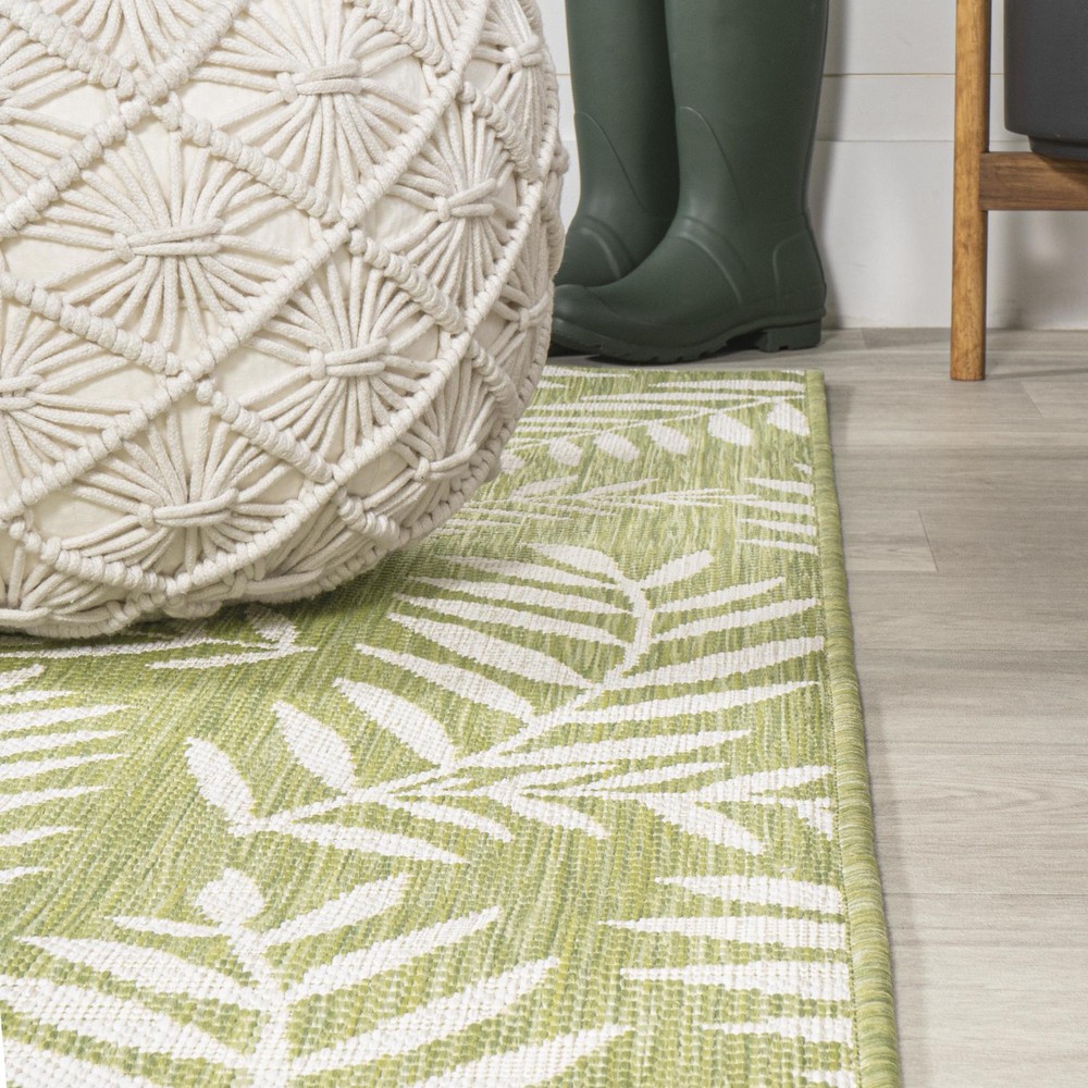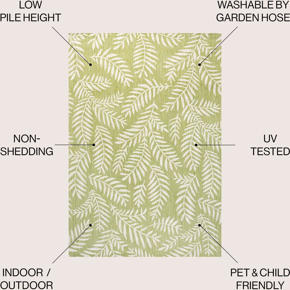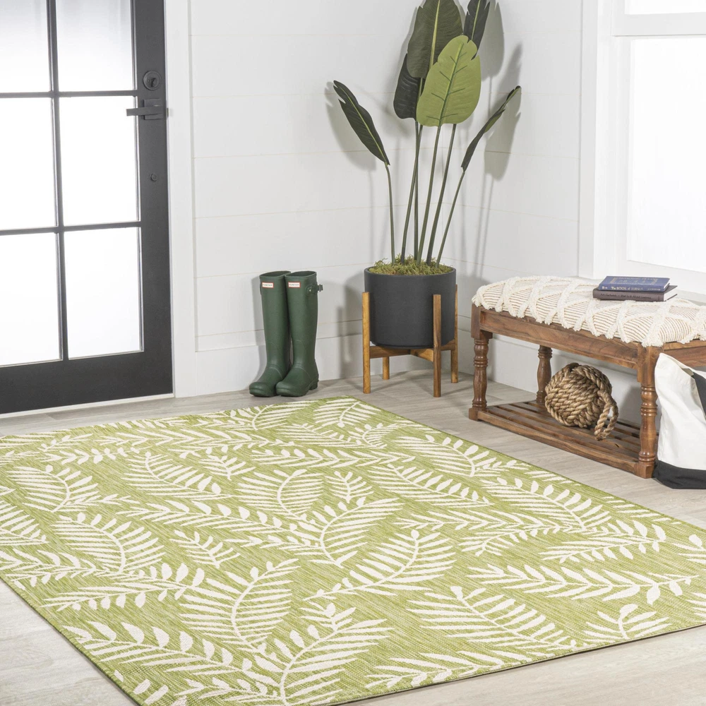 1. This vibrant tropical leaf rug instantly livens up any space! Super durable polypropylene holds up indoors or out, and the flat weave makes it easy to clean with just soap and water. Love how the bold botanical print feels lush yet modern. Super lightweight for moving around, though a rug pad helps keep it in place. Arrived quickly and looks even better in person - total steal for the price! Makes my patio feel like a vacation spot.