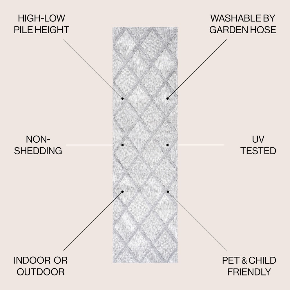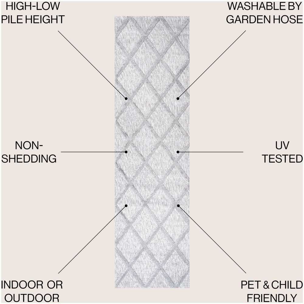 This stylish indoor-outdoor rug is a game-changer! The neutral gray trellis design blends seamlessly with any decor, while the durable polypropylene material makes it perfect for high-traffic areas. Easy to clean and resistant to stains, it’s ideal for homes with kids or pets. The lightweight yet sturdy construction holds up beautifully on patios or indoors. Love how it adds a touch of Mediterranean elegance without the fuss—great value for the price!