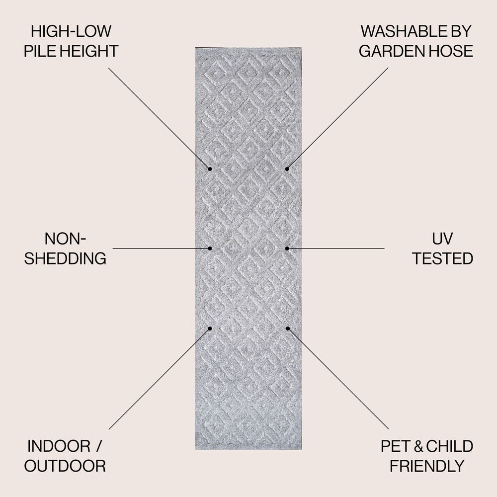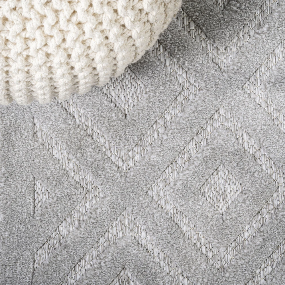 This rug is a game-changer! The stylish geometric design adds a touch of Mediterranean charm to any space, indoors or out. The neutral gray blends effortlessly with my decor, and the polypropylene material is super durable—perfect for high-traffic areas. It’s soft underfoot but tough enough to handle pets and spills. Super easy to clean, too! Love how it elevates my patio without sacrificing practicality. Highly recommend for anyone wanting both style and function!
