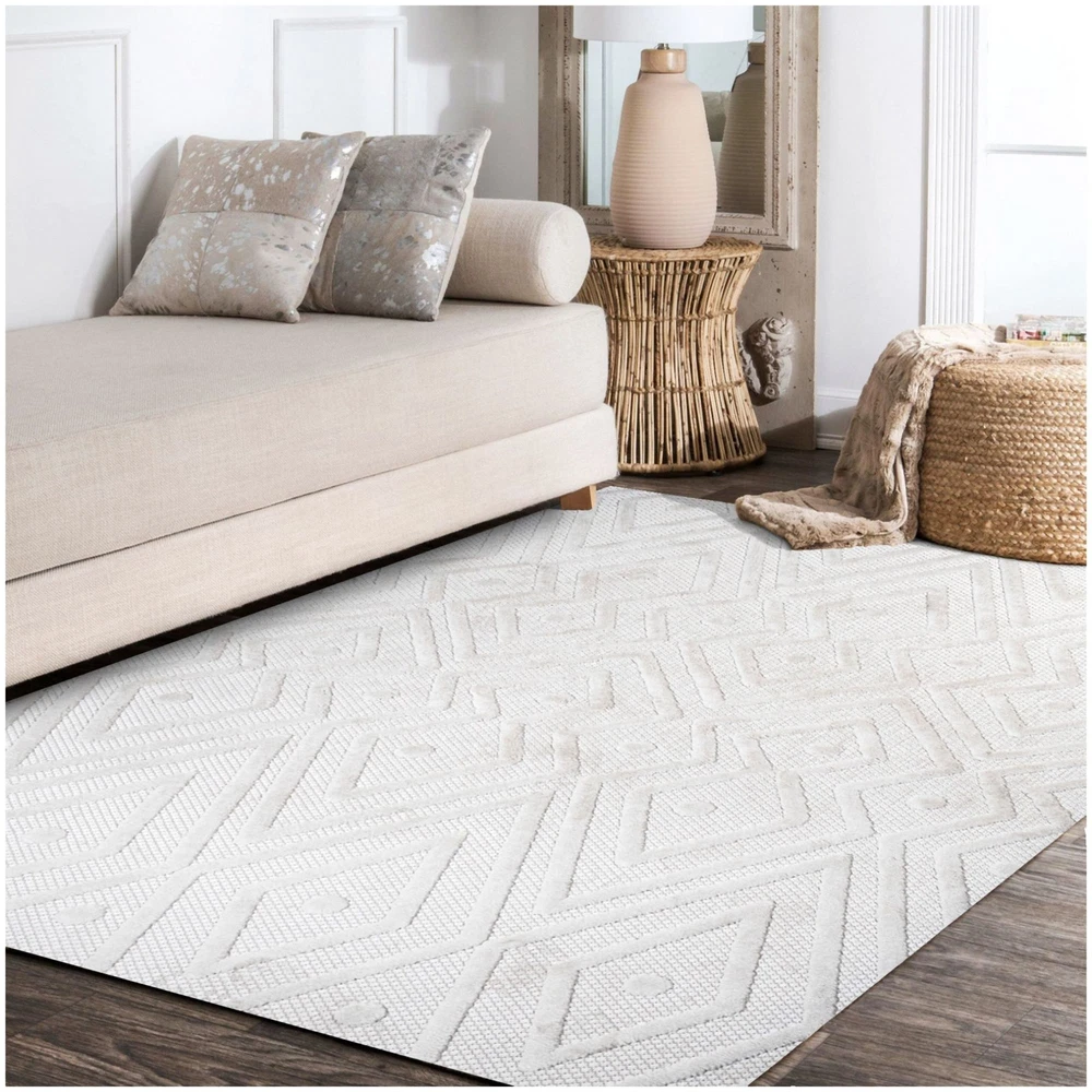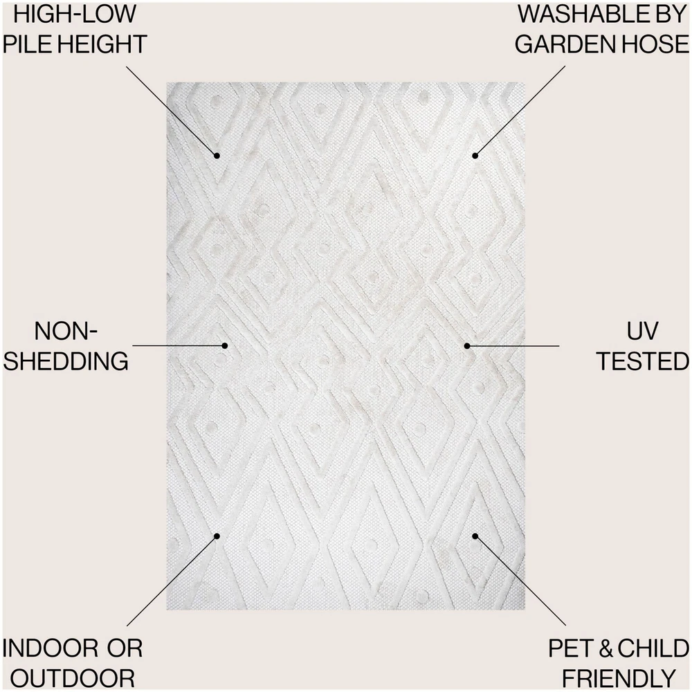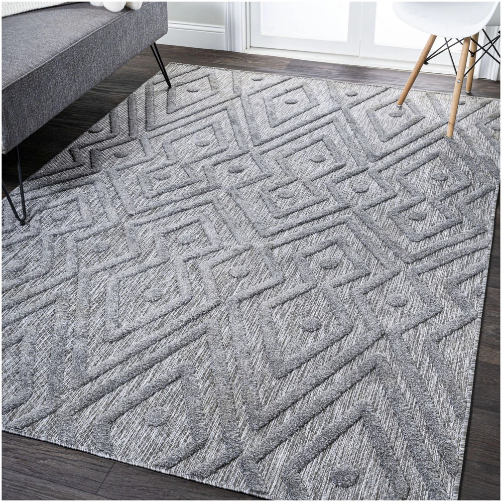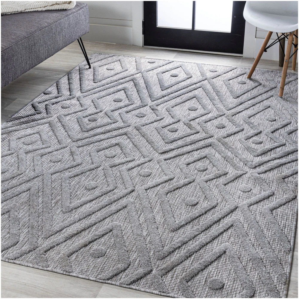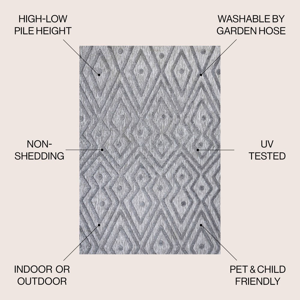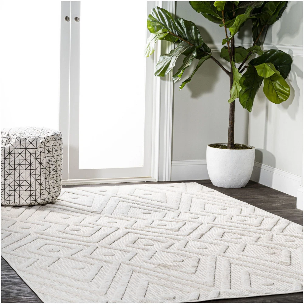 Love this rug—it adds stylish, boho charm to my patio! The Moroccan-inspired pattern looks like a high-end handwoven piece but is super durable for indoor or outdoor use. Polypropylene makes it easy to clean, even with pets around. Perfect size to define a cozy seating area. The off-white and gray design is neutral yet adds subtle texture. Lightweight but stays in place. A great affordable upgrade for any space!