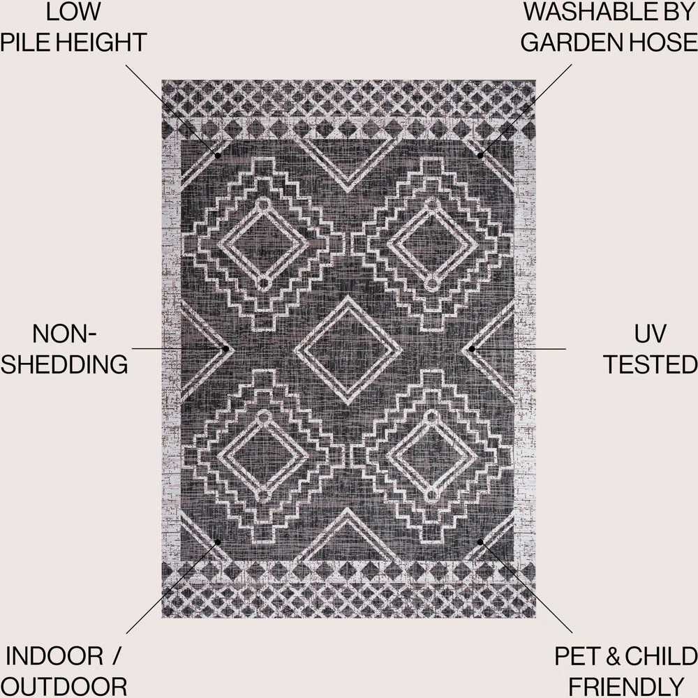 1. This Jonathan Y rug is a beautiful boho-chic statement piece! The geometric diamond and trellis design adds bold texture, while the soft black and ivory color combo keeps it versatile. The polypropylene material makes it durable for indoor or outdoor use—perfect for a living room, patio, or entryway. Lightweight yet sturdy with a lovely tribal feel. Highly recommend for anyone wanting effortless style!