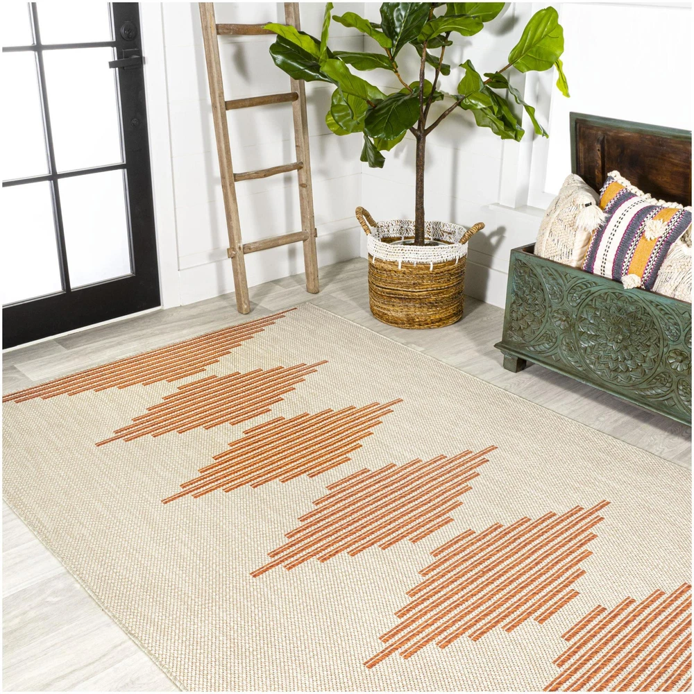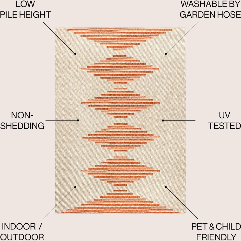 1. This rug is a gorgeous statement piece! The bold geometric pattern adds modern Moroccan flair, and the rich terracotta tones blend warmth and style. Perfect for indoor or outdoor use, it’s super durable with a low, easy-to-clean pile. The mid-century design elevates any space—living room, bedroom, or patio. Lightweight yet sturdy, it stays put without sliding. Absolutely love the vibrant colors and how it ties a room together. A steal for the quality!